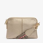 The Elms+King Bowery Petite offers the style of the bestselling Bowery Wallet, in a compact design. Made from 100% recycled premium polyurethane with 14-karat light gold-plated hardware, the Bowery Petite has capacity for your essentials and features a rear zipper pocket, and an interior open top slip pocket. With its adjustable/removable wide crossbody strap in an exclusive chevron design, this piece can be used as a compact clutch, shoulder bag or crossbody bag.