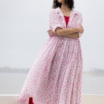 This Edith Dress is made from soft, lightweight cotton voile and falls with ease and movement. It features a gathered waist, relaxed sleeves, and a button-down bodice with a classic collar. The delicate floral print adds a gentle touch of nostalgia, while the airy cotton keeps you cool and comfortable through the warmest days.