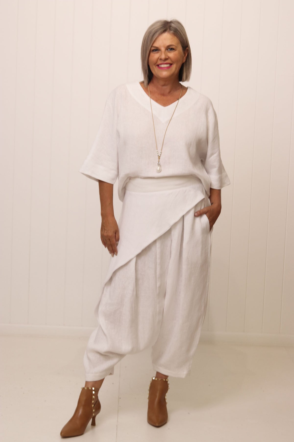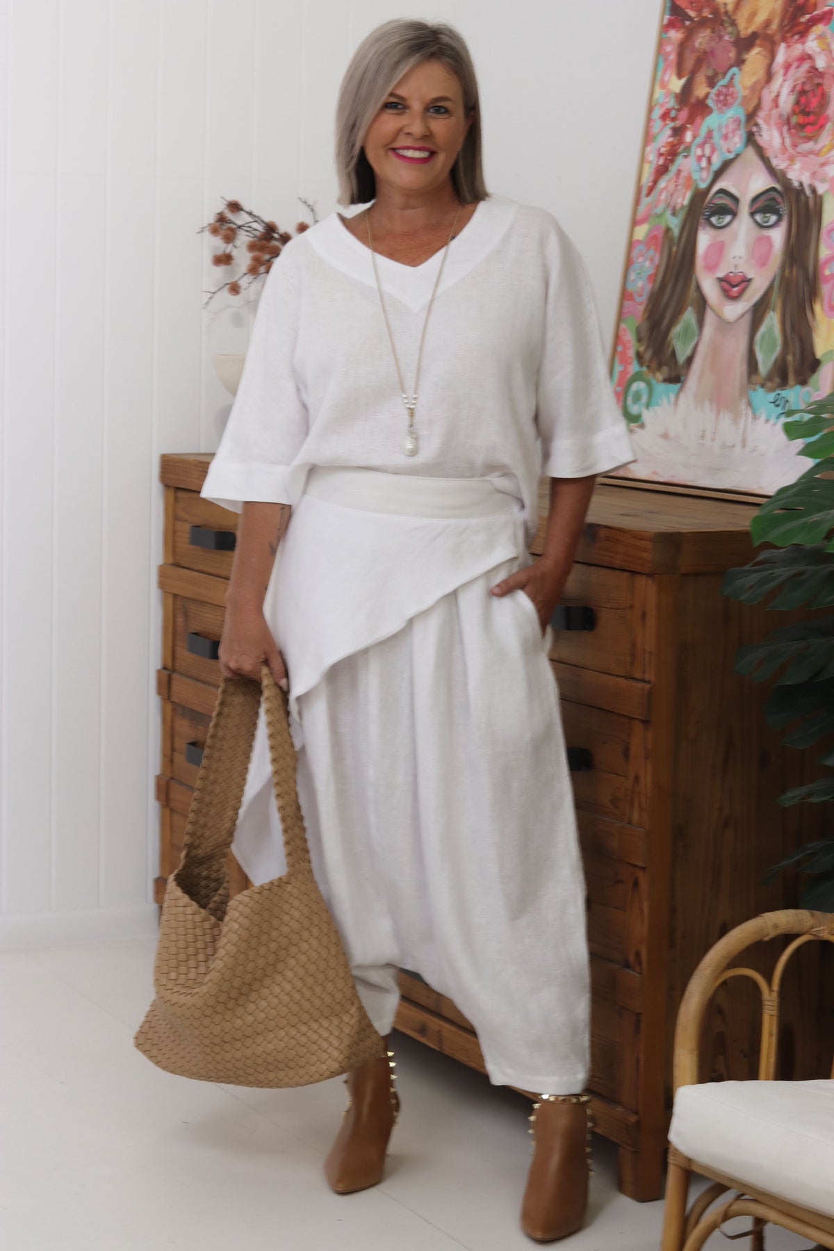 We think you're going to love this one! Brand new to our Pearce range, the Elliot Top is made from 100% linen, a lightweight and breathable non-stretch fabric and soft hand feel. The V-neckline beautifully frames the collar bones, while the straight cut short sleeves add a touch of simplicity. Its versatile boxy silhouette perfectly showcases the fluid drape and movement of the fabric, complete with a straight hemline.