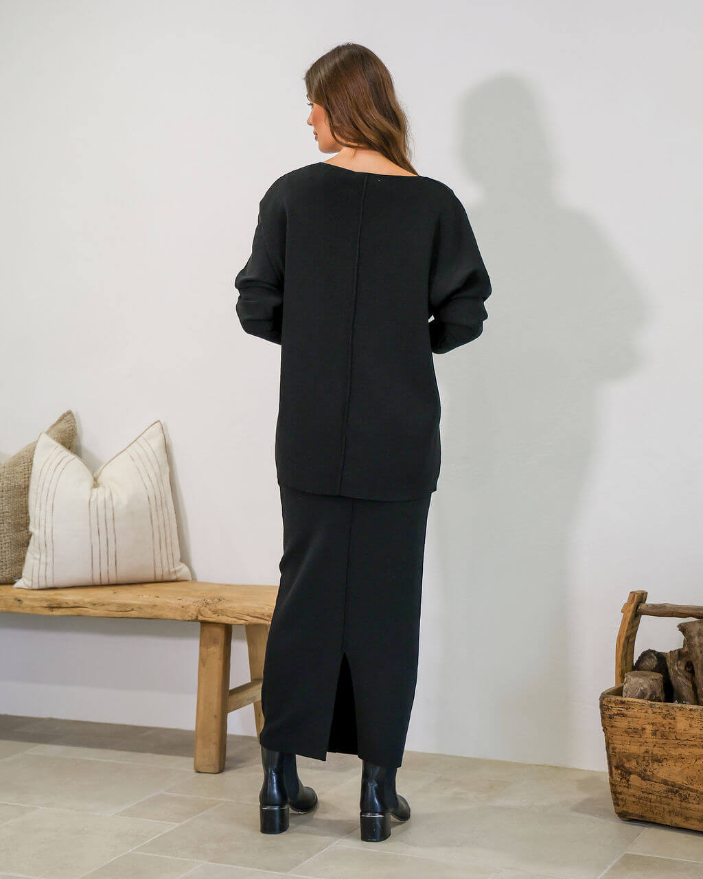 The Hannah Sweater boasts a V-neckline and long sleeves. Constructed with breathable materials, this sweater is perfect for all-day wear. Made with 60% polyester and 40% viscose, it offers a lightweight and soft feel. The exposed seam down the middle adds a touch of detail to complete your look. Perfect for the cooler days. Layer over skirt or pants.