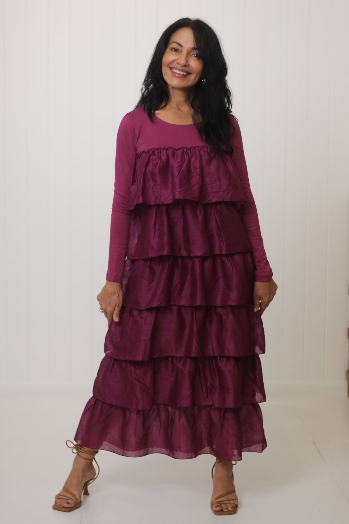 Meet Harriet - an elegant dress featuring full length sleeves, round neckline and beautiful soft frills running down the body.