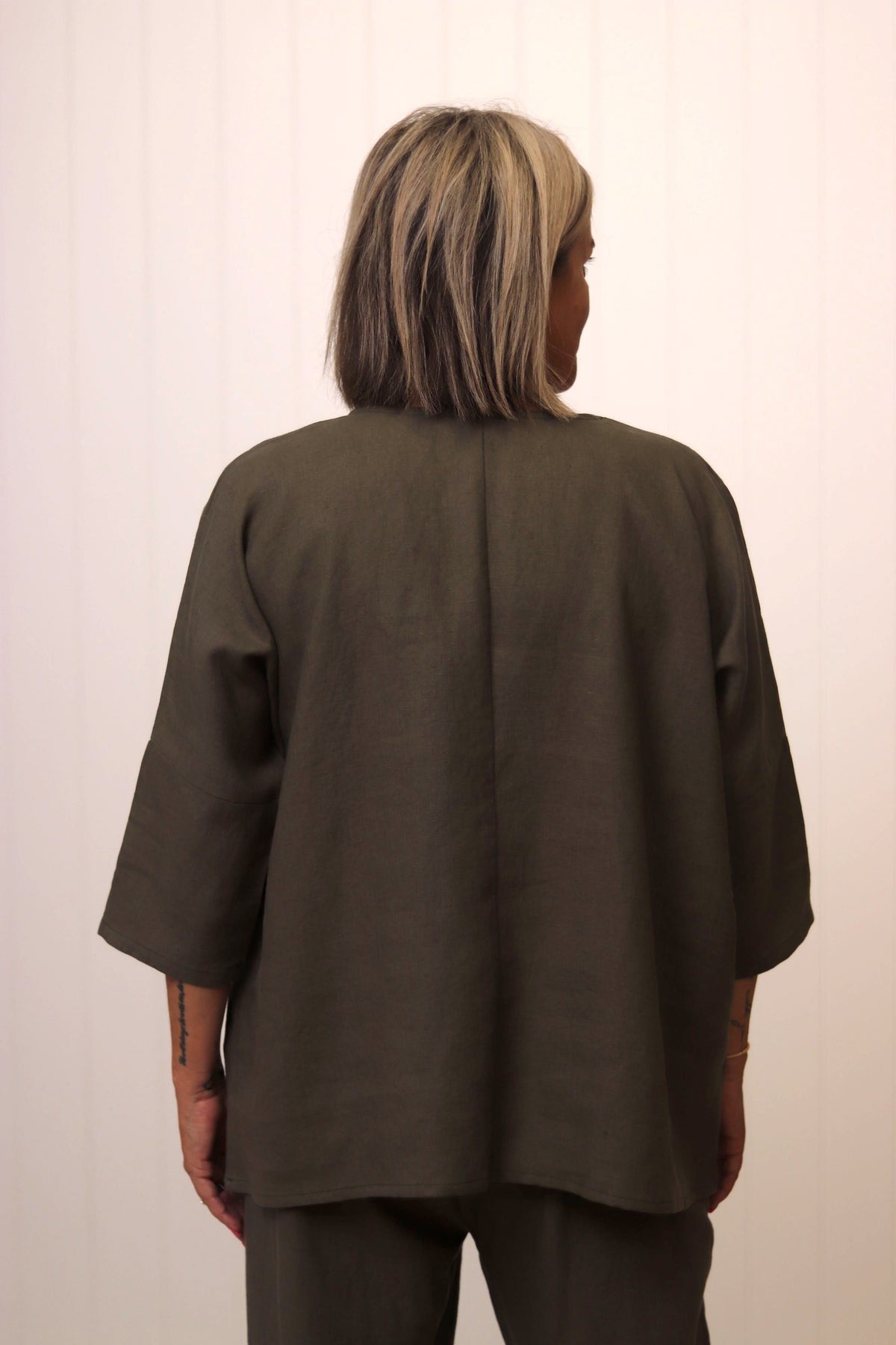The Hinley Top Sleeved is now available in a beautiful Khaki! The Hinley is the perfect shaped shirt to be both worn out to cover the tummy and backside beautifully, or to tuck and blouse the front to create our favourite flattering shape. Slightly shorter front and lovely draped sides give this top a shape that sits so lovely on the body it will soon become a firm favourite in your wardrobe. Made from gorgeous quality linen and very proudly handmade here in Australia. Sits back perfectly with the Pearce pant for a fantastic outfit.