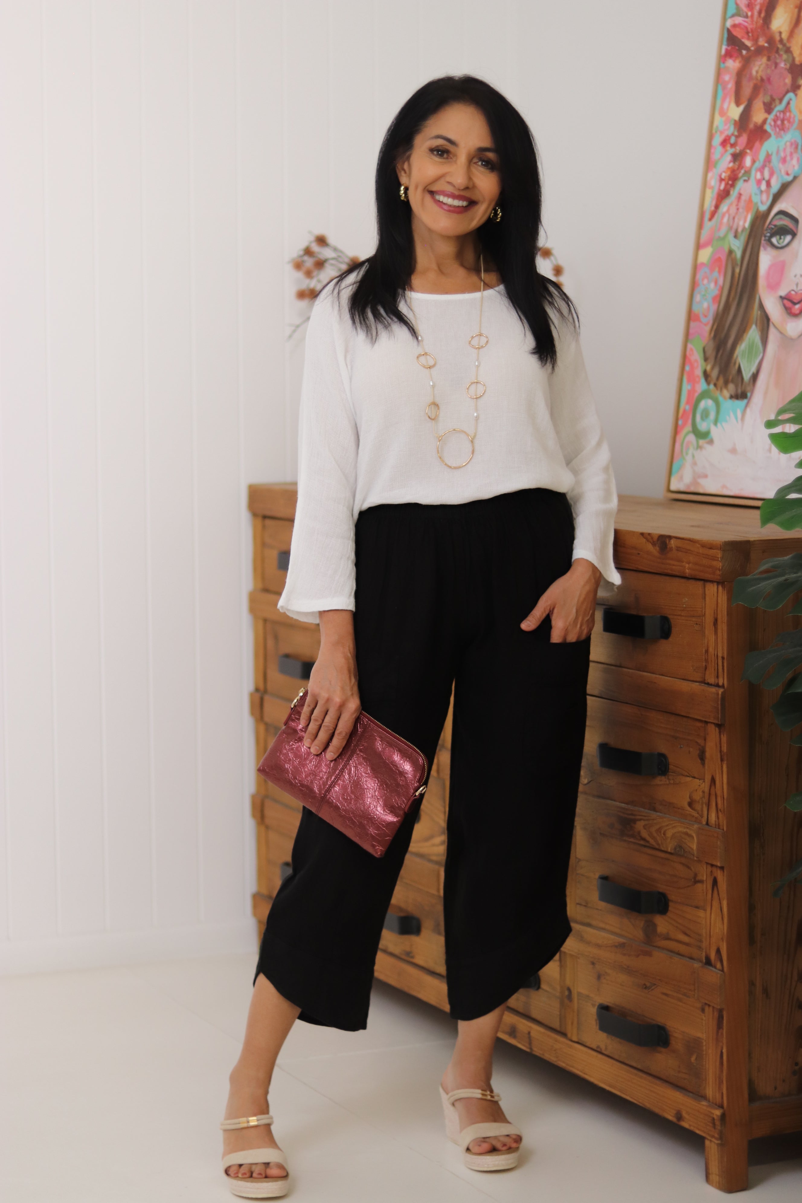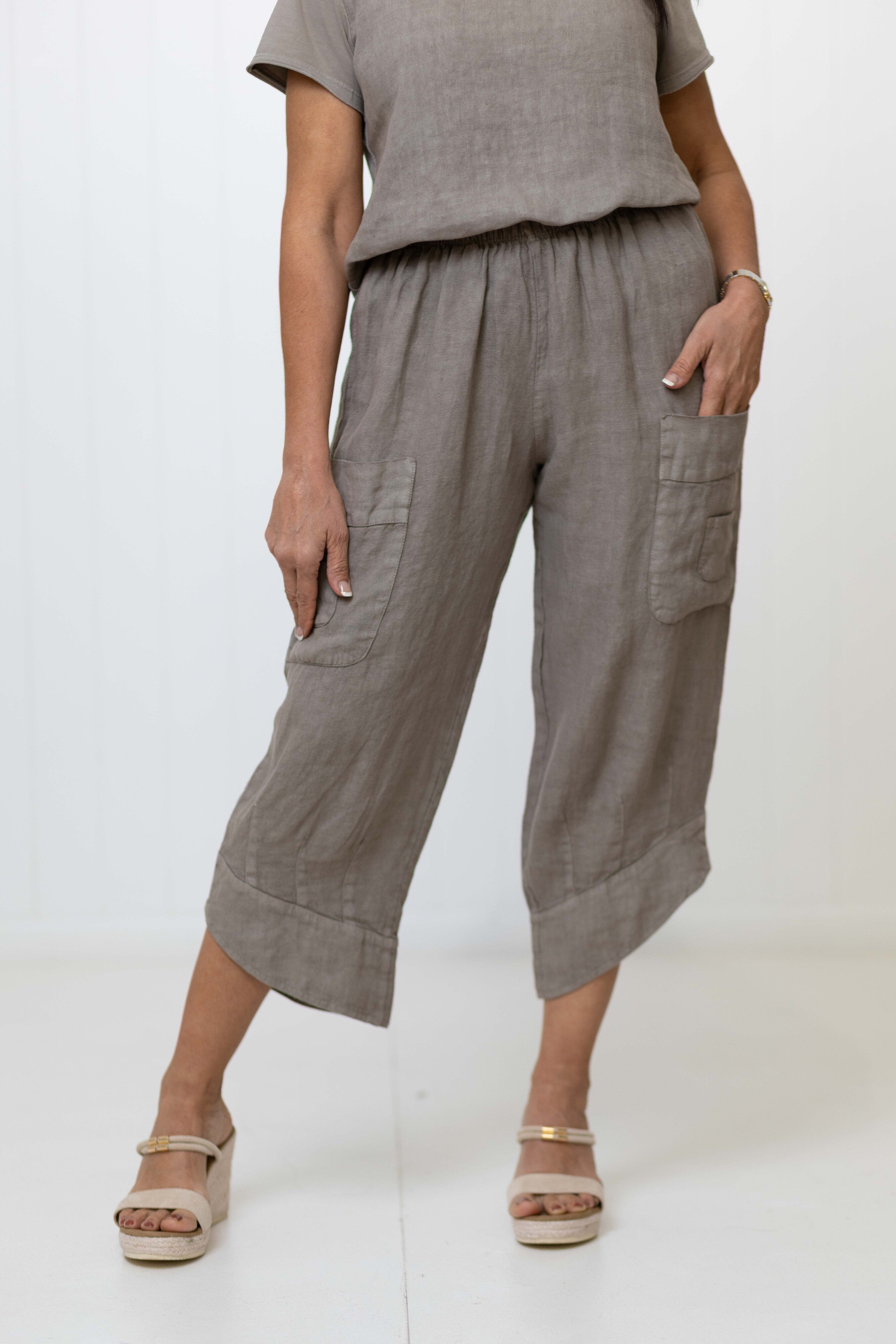 Our Immacolata Linen Pant is an all time best selling style. Her relaxed but flattering shape make her the perfect choice for weekend/casual wear whilst still looking effortlessly put together.