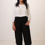Our models range from size 8 to 14 and are wearing SM and ML. They have styled with our Rosa, Sienna, Amalia, Carmela and Heather tops.