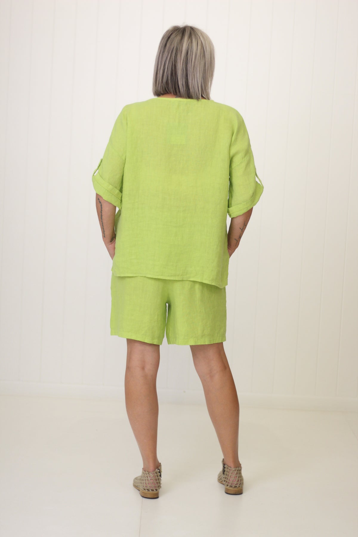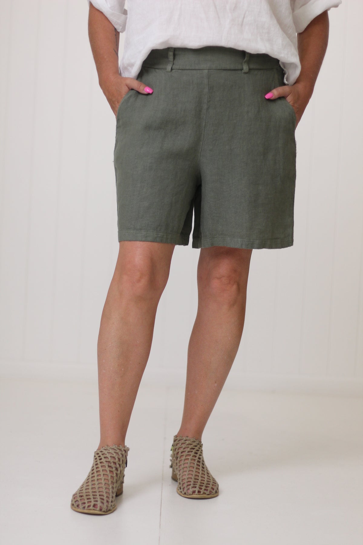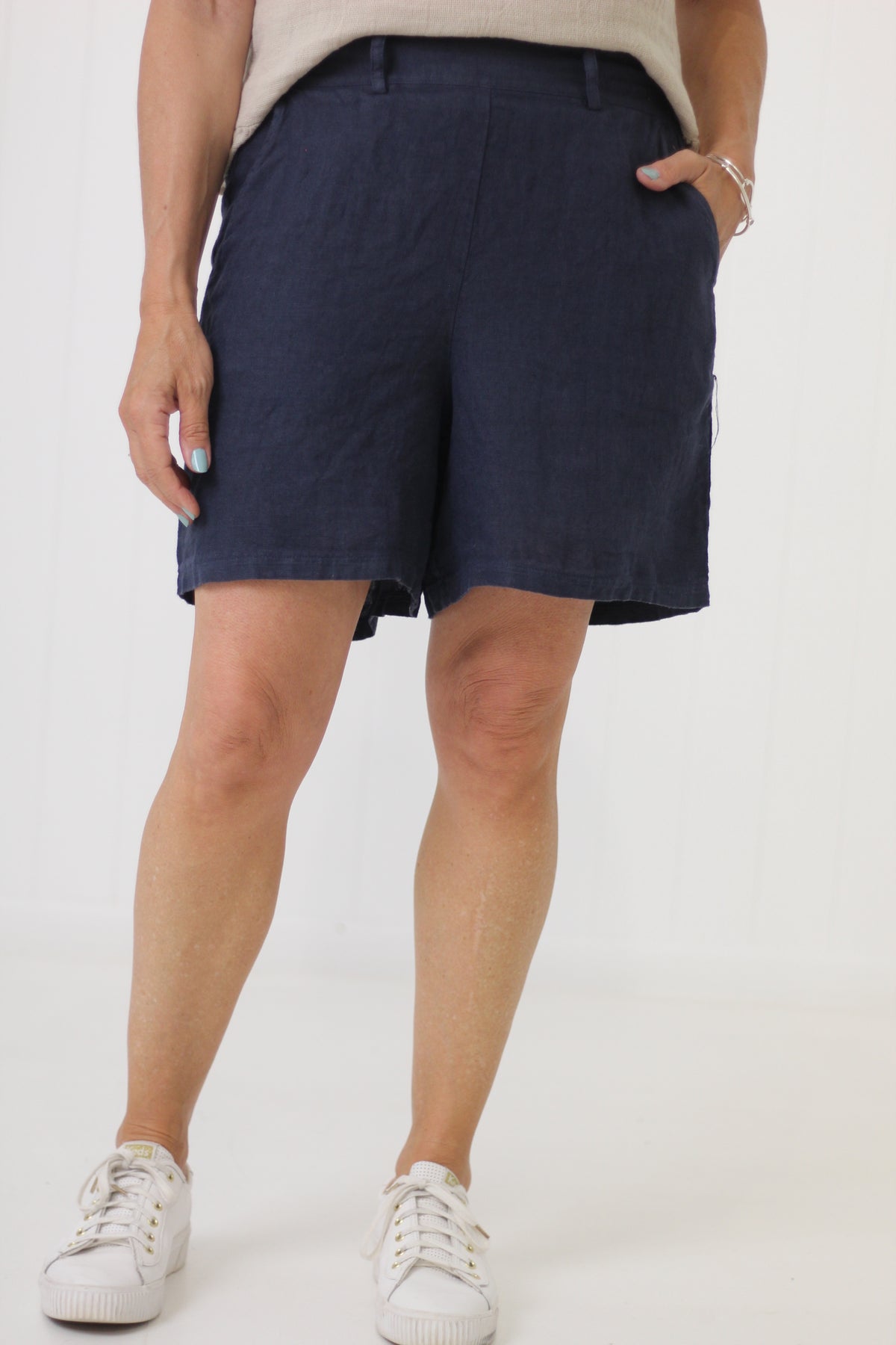 Experience effortless style with the Jenny Short. Made from luxurious linen, these shorts are tailored for a perfect fit and feature an elastic back waist band for ultimate comfort. Belt tabs offer the option to complete the look with a belt. Side pockets are another feature. Choose from a variety of colours. They make a perfect outfit with any of our gorgeous tops. Upgrade your wardrobe with these stylish shorts today!