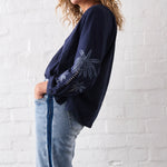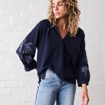 The relaxed Kimberley Top delivers all of its style in the thoughtful details. Its cool 100% cotton marle fabrication and subtle palm tree embroidery on the arms add unique touches. Extra detail comes through with the tailored, comfortable neckline and perfectly executed vee, while the ¾ arms are finished with a delicate buttoned cuff. Wear casually during the day, or to comfortably dress up for a summer evening barbecue.