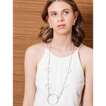 The Leveque Necklace adds a touch of casual elegance to any outfit with its combination of circles and pearls.