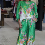 Crafted from luxurious Italian silk, the Lisa Silk Pants feature a distinctive boho print that effortlessly blends comfort and elegance. Their wide-leg design and elastic waistband ensure a flattering, flexible fit, allowing you to move through your day with ease. Perfect for brunch, beachside cocktails, or a tropical getaway, these pants combine refined style with premium comfort for versatile, sophisticated wear.