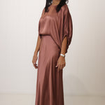 With its maxi length and elastic waistband, it offers both versatility and ease of movement. Available in Peacock & Cocoa you can make the most stunning set by styling with the matching Luxe Kristie Top or pair with a tee & sneakers for a casual luxe look!