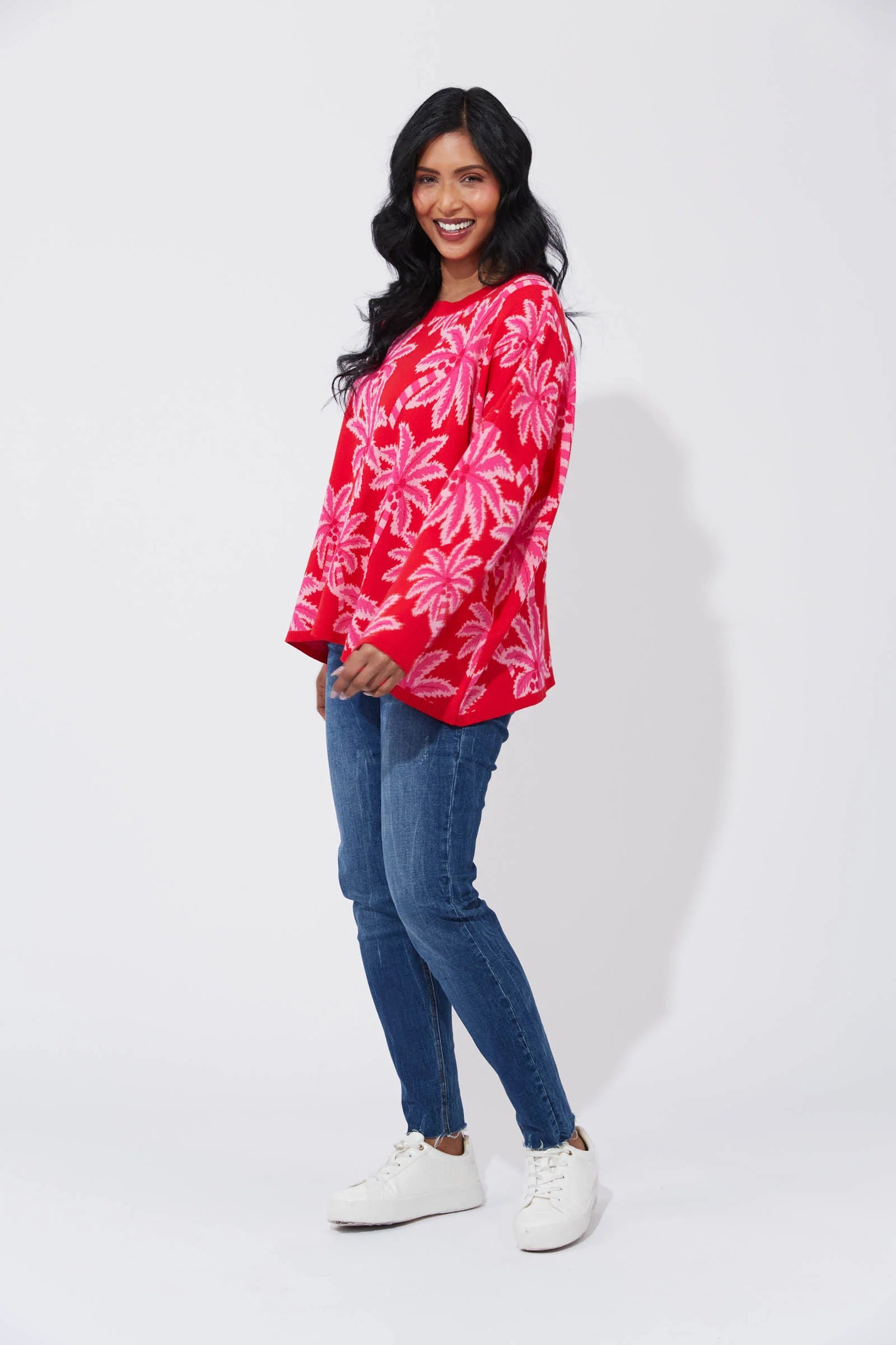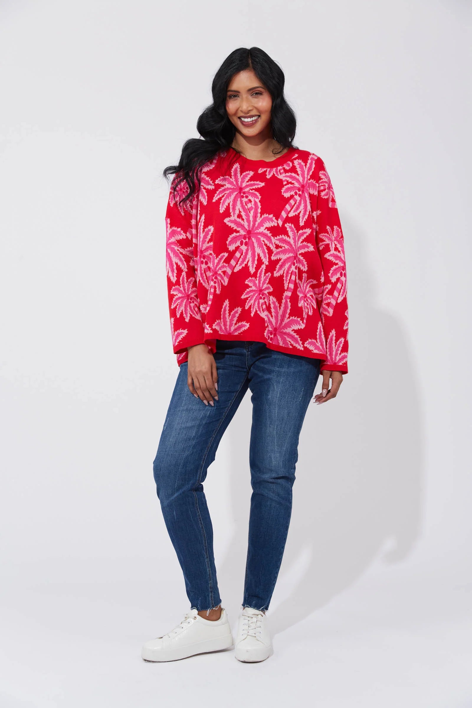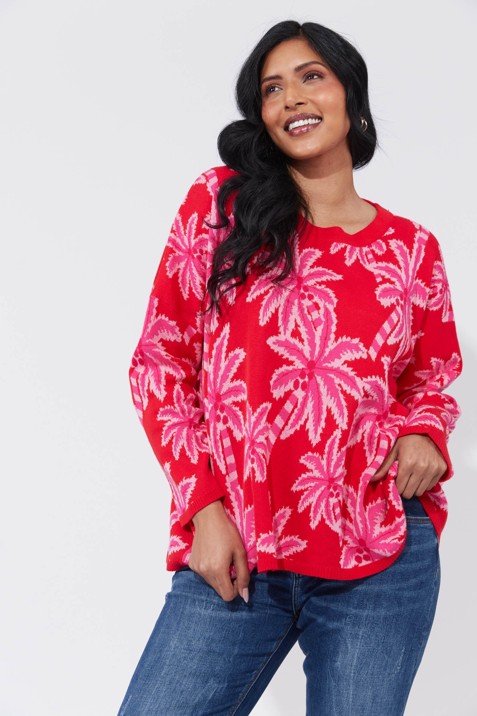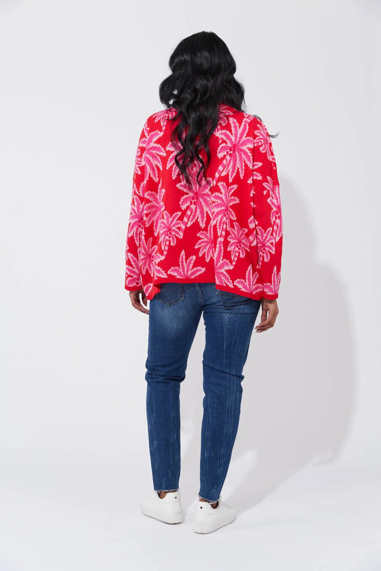 The Miami Jumper infuses tropical charm into your winter knitwear collection. Showcasing a lively palm tree print, this standout knit is perfect for breaking free from winter's gloom and embracing vacation vibes. In 100% cotton, its relaxed fit ensures comfort while keeping your look fresh and laid back. Pair it with your travel essentials for a stylish airport-ready outfit!