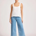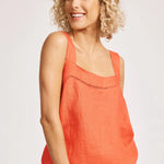 A timeless warm-weather essential. Crafted from 100% linen for breathable comfort. Features a square neckline, wide shoulder straps, and ladder lace trim detail. Designed in a structured, slightly cropped silhouette.