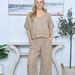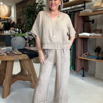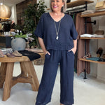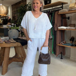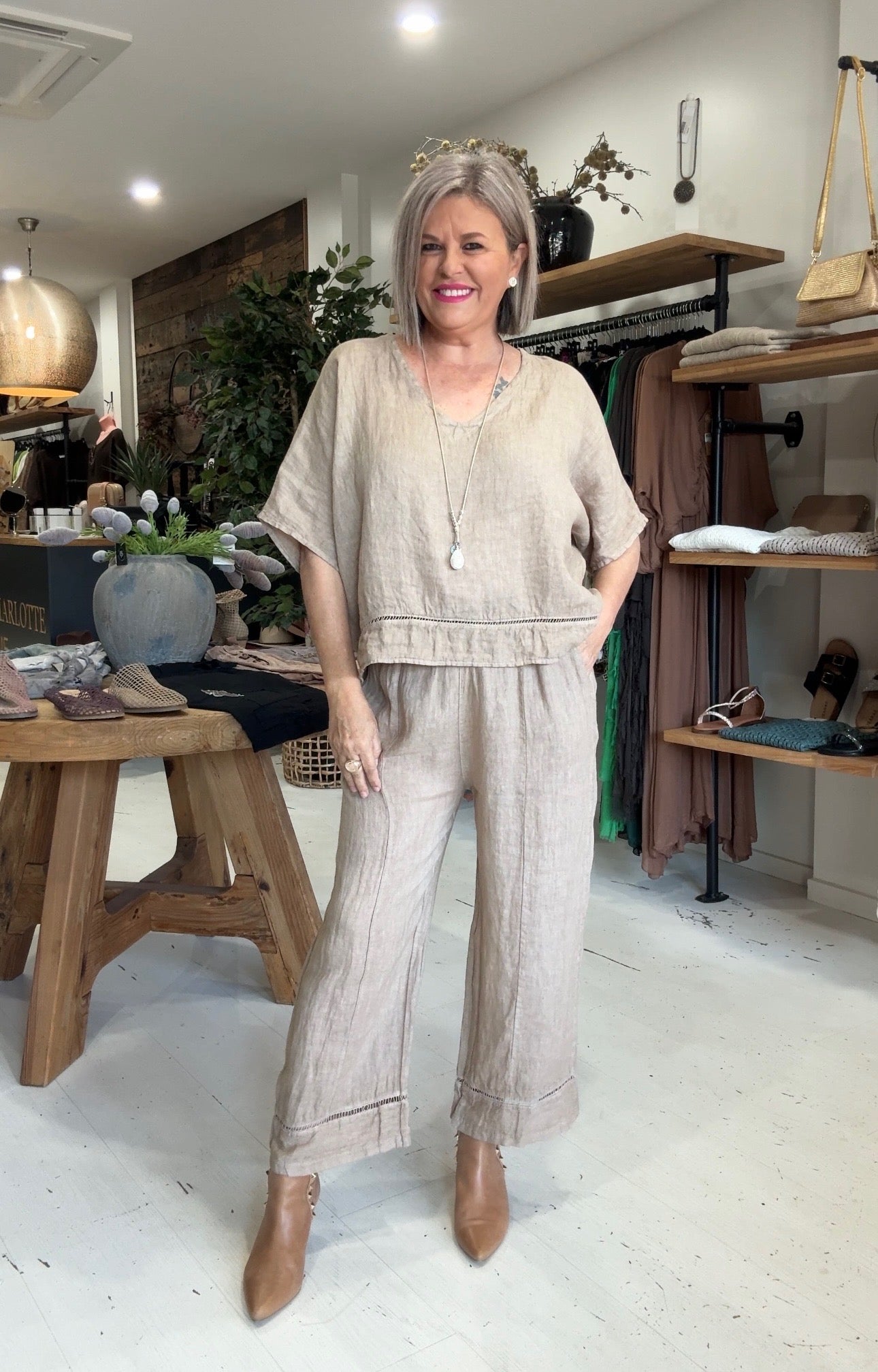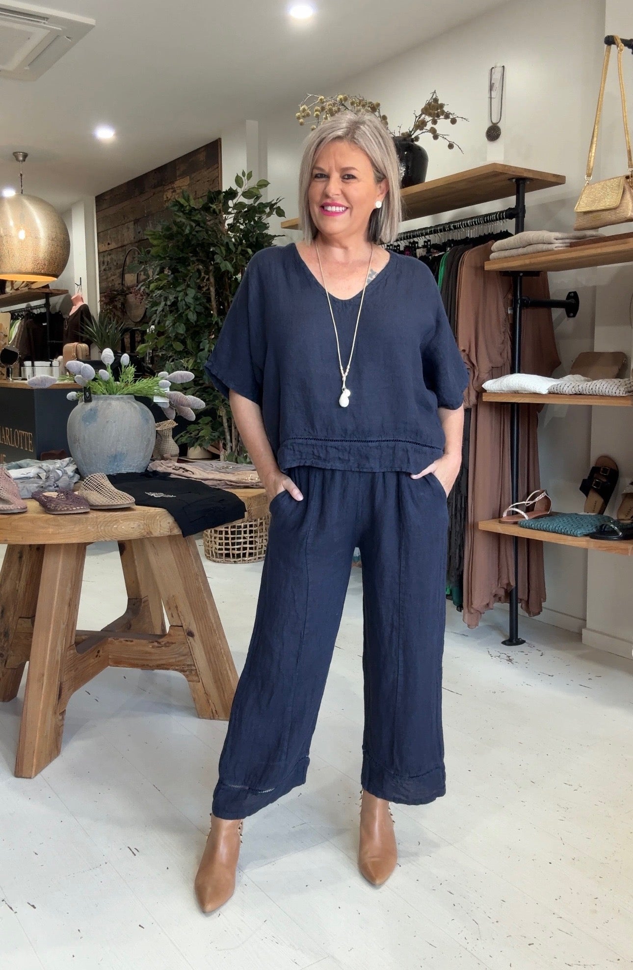The Nicki Top is crafted from lovely soft linen for a flawless shape and on trend crop length. Its unique feature insert adds a subtle design twist, while the V Neck is a flattering shape.