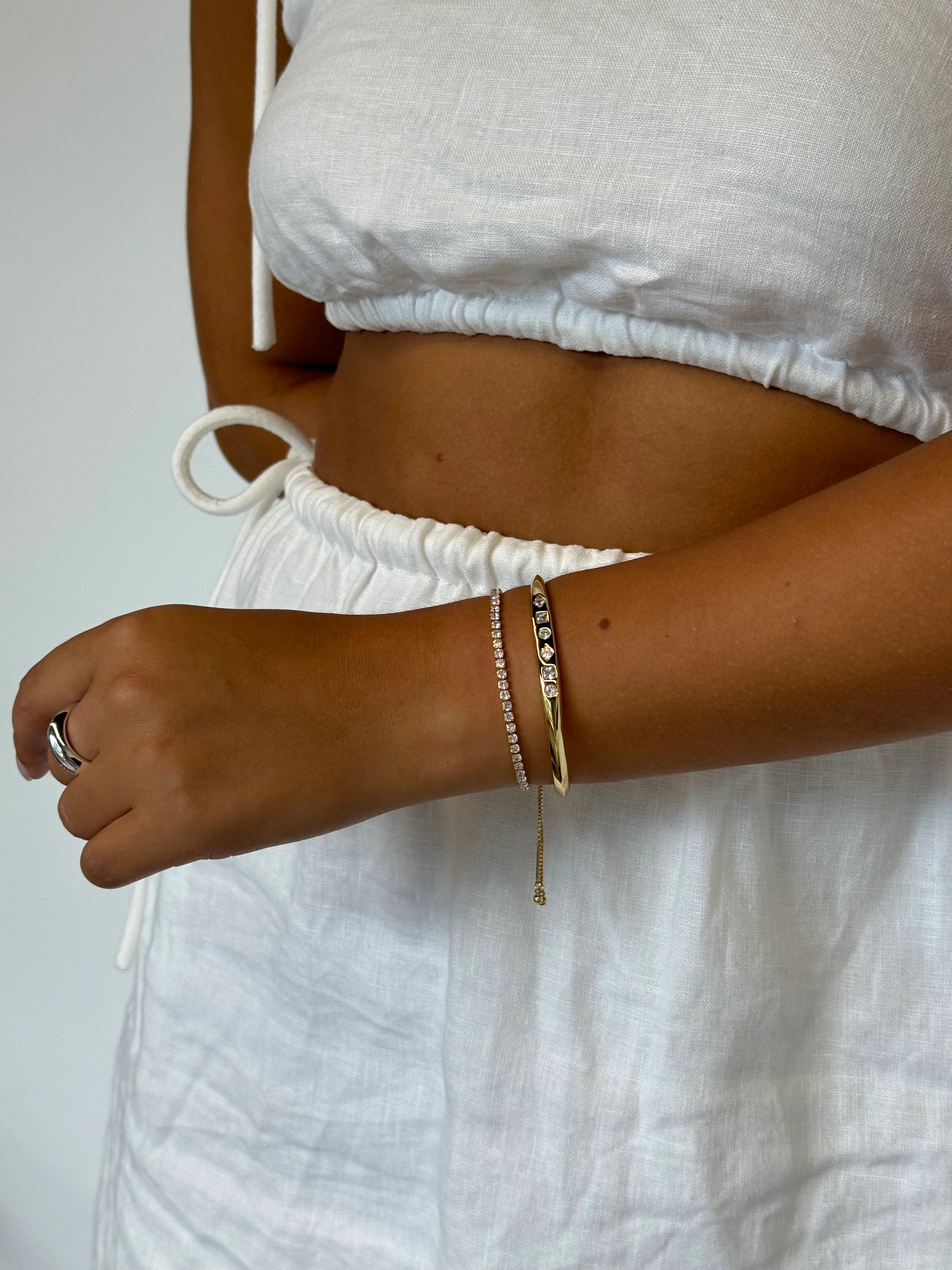Meet our Nikki Tennis Bracelet – an exquisite blend of timeless elegance and comfort. This bracelet features a classic design with sparkling stones, exuding a refined charm. What sets Nikki apart is its adjustable design, ensuring the perfect fit for any wrist. Elevate your style effortlessly with the Nikki Tennis Bracelet, a versatile accessory that adds a touch of sophistication to every occasion.