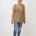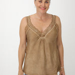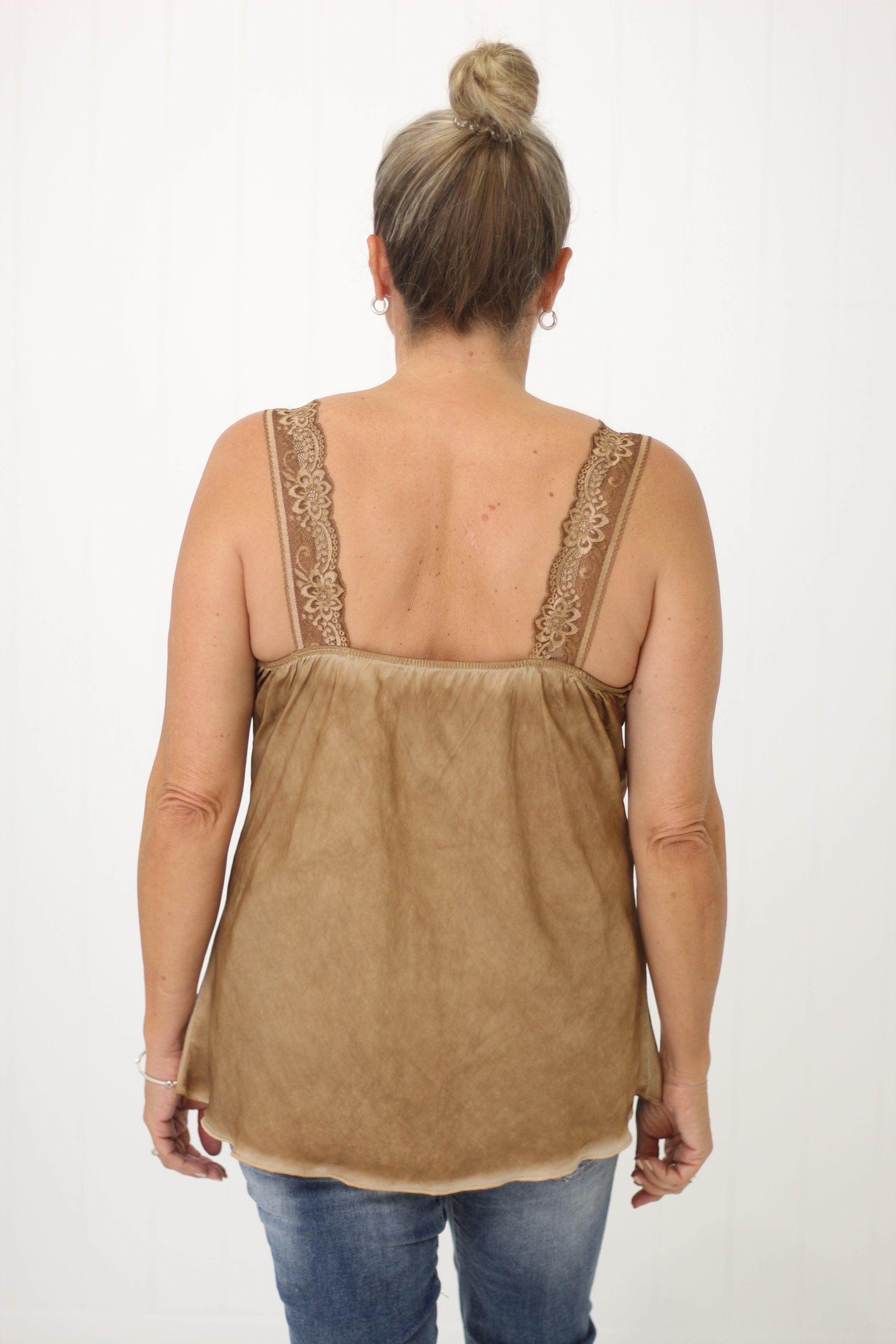 Cut on the bias for a flattering, effortless drape, the Noemi Lace Cami in Tabacco is the perfect layering essential. Designed with wide shoulder straps and a soft, feminine V-neckline adorned with delicate lace, this timeless piece adds elegance to any outfit. A true wardrobe hero, it pairs beautifully with everything from tailored blazers to relaxed denim.
