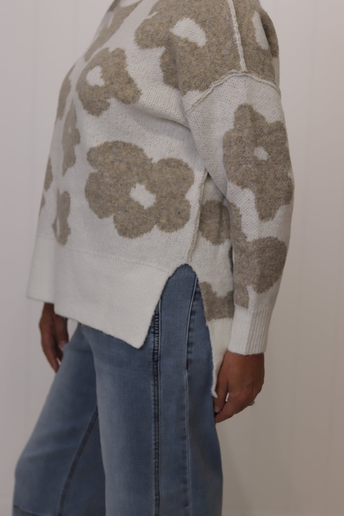 The Sweet Flower print makes this little beauty the perfect knit to pop on with your fave jeans and joggers. The high low hem line and side splits make sure she is a flattering shape that sits well.