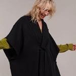 For your weekend escapes—whether in the city or the countryside—the Palmer Knit Cape is the ideal companion. Featuring a stylish lapel, a self-fabric tie, and a relaxed fit, it offers a sophisticated layer that keeps you warm through chilly winter weather. Whether draped over a casual T-shirt or a cosy knit, this cape ensures comfort and warmth, making it your go-to piece for winter getaways.