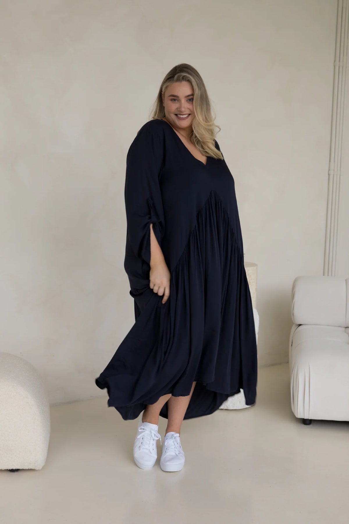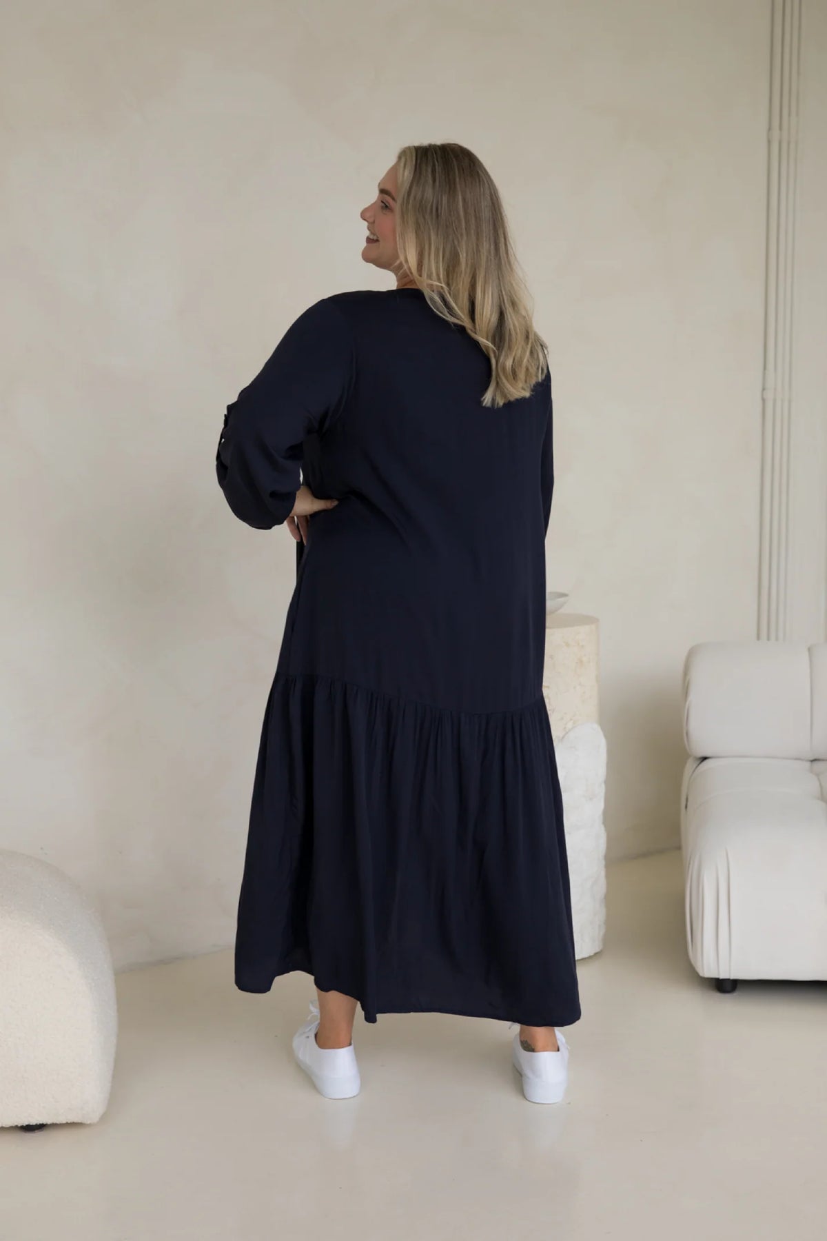 Stylish and flattering for every body shape - make a fashion statement with our Peak Maxi Dress! This beautiful, lightweight dress is the perfect pick for any occasion. Create a look that's all your own with the adjustable V-neckline and optional button-back cuffs. With a hi-lo hemline, you can show off your best features while staying comfortable all day long. Get ready to turn heads with the Peak Maxi Dress from us!