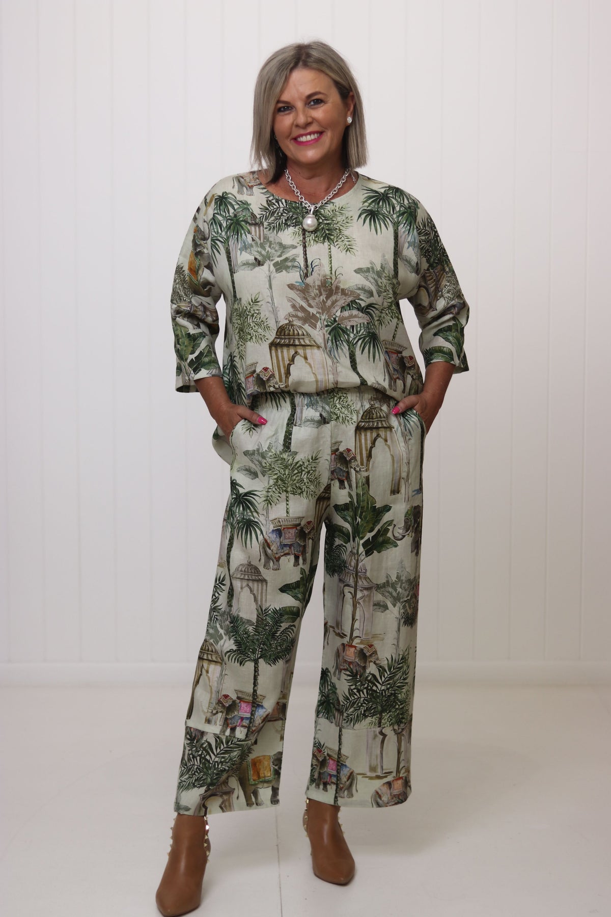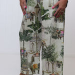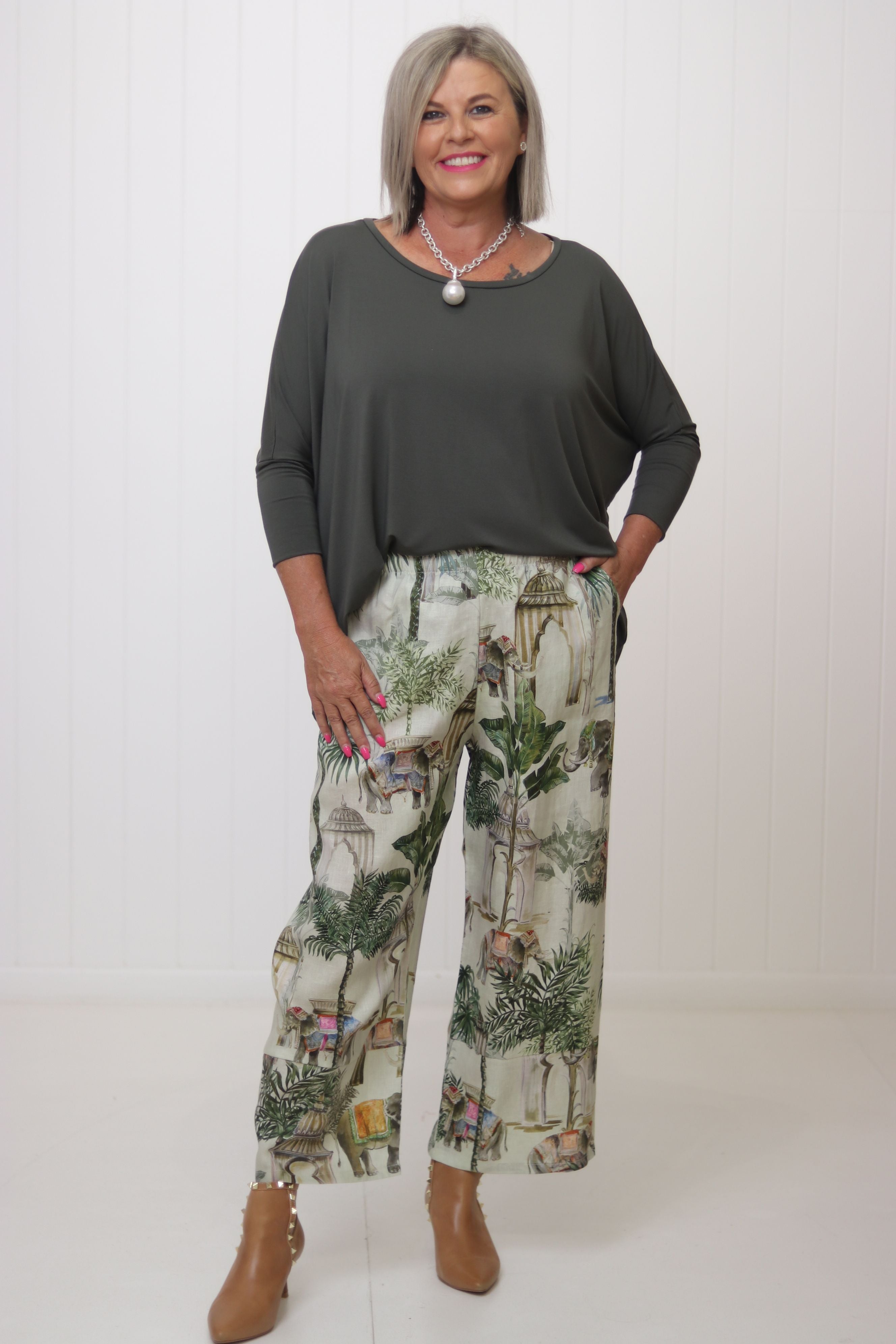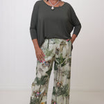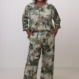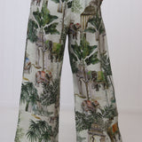 The Pearce Pant is now in a beautiful Jungle design pattern! For those who aren't afraid to step out of their comfort zone and wear a something little extra! A timeless essential, the Pearce Pants are designed for ultimate comfort and effortless elegance. Crafted from beautifully soft linen, they feature a comfortable elasticised waist and a flattering ankle-length cut, making them a versatile addition to your wardrobe.