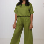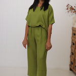 Kay is wearing XS/S & is a size 10 in pants, styled with the Hinley Top Pesto.