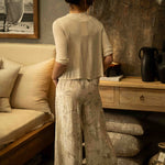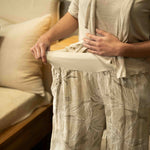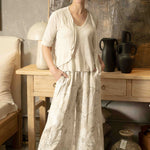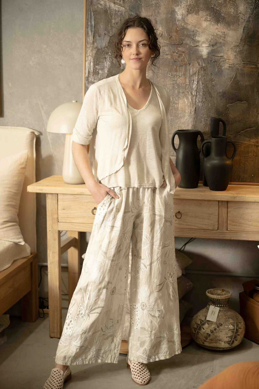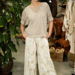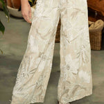 A thick, stretchy waistband ensures a comfortable and secure fit, sitting smoothly at the waist without digging in. Functional hip pockets add practicality while maintaining the clean, minimalist lines of the design. The all-over print features a gentle blend of abstract foliage and floral-inspired shapes, adding quiet texture and interest to the neutral base. In its soft Beige shade, these culottes pair effortlessly with everything from crisp whites to earthy tones, making them a versatile staple for elevated everyday dressing.
