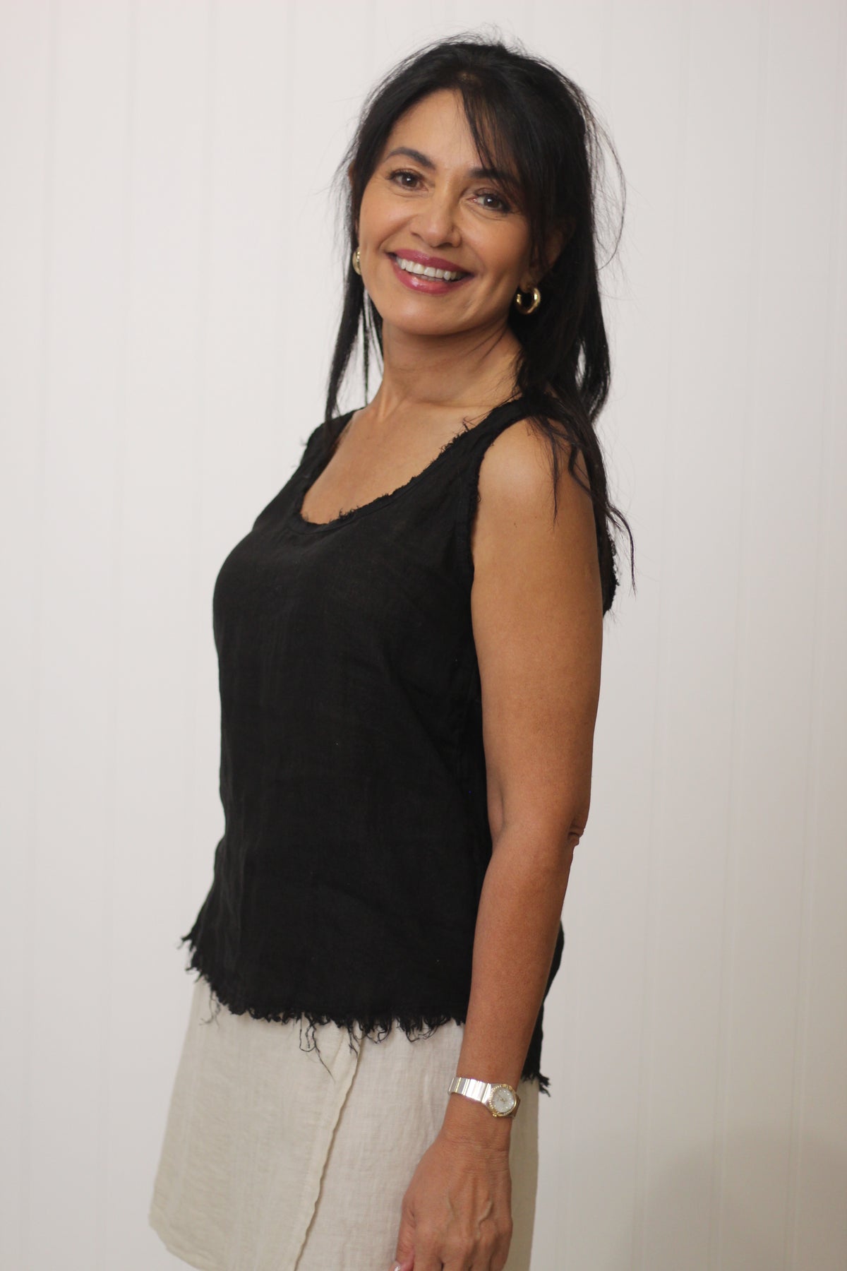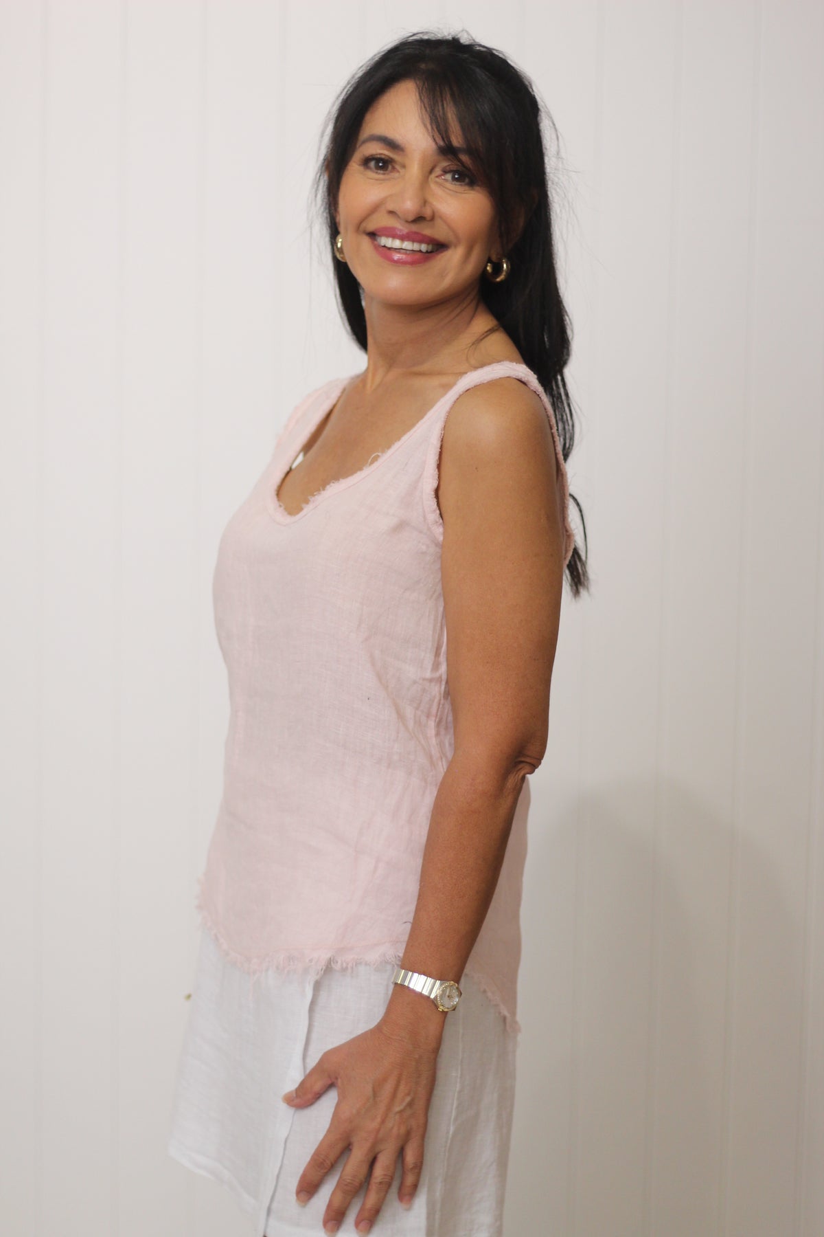 This Raw Edge Cami is perfect for those who value simplicity and comfort. Made with 100% linen, it boasts a lightweight and breathable design with thin straps and a scoop neckline. The frayed edging adds a touch of texture to this easy-to-wear cami. A great staple piece to wear in summer months and perfect for layering under something warmer in cooler weather.