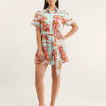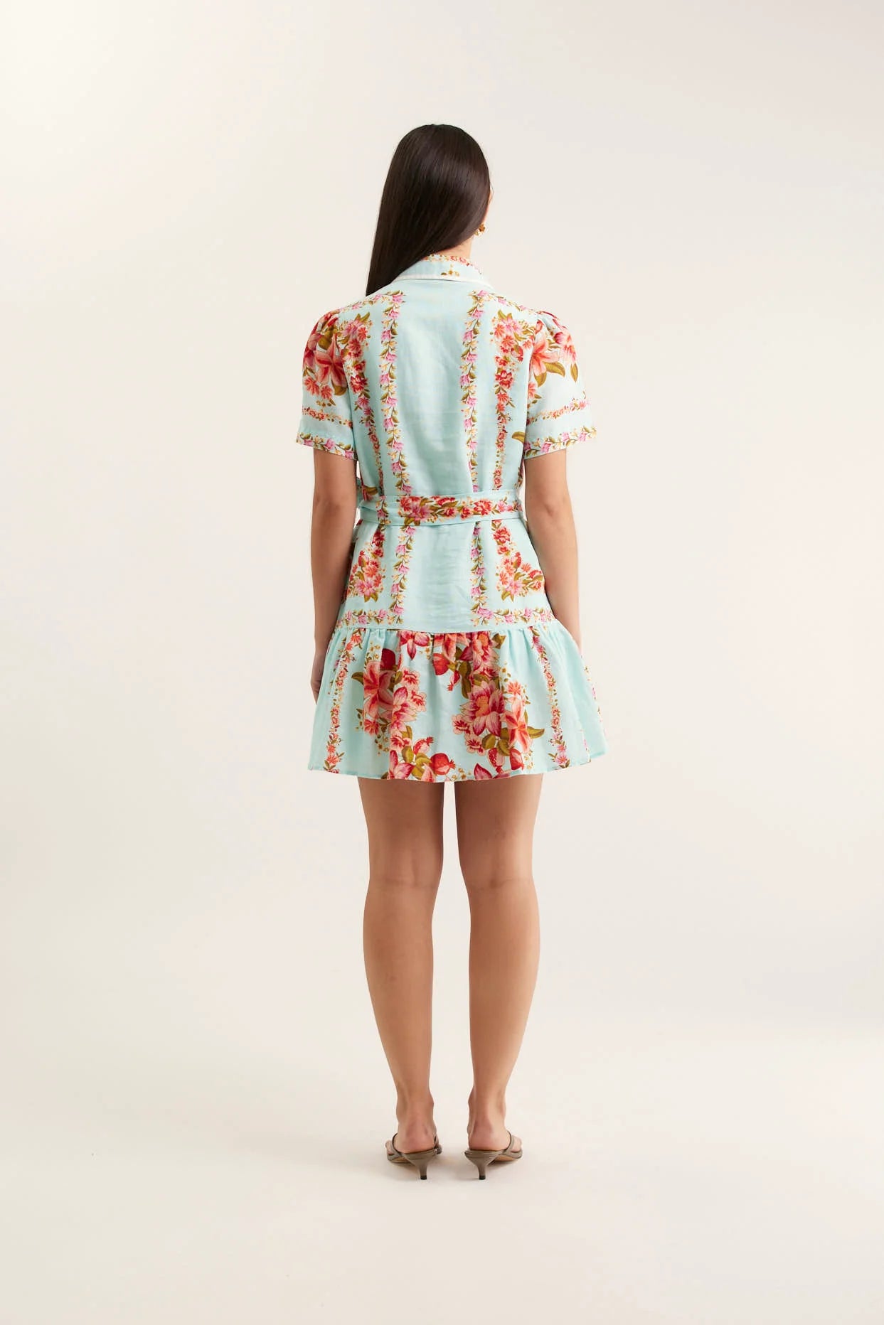 Stay cool and comfortable in our Renae Linen Dress Portofino. Made from 100% linen, this dress features a short sleeve and collared design, with a mint Portofino print and a concealed button placket. The gathered tiered skirt adds a touch of elegance, while the sash belt cinches the waist for a flattering silhouette. Keep it clean and fresh with a gentle hand wash.