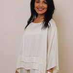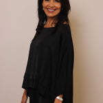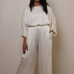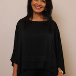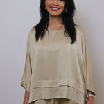 Drina is a size 8 and has styled the Riley Satin Blend Top with the matching Karly Satin Blend pant.