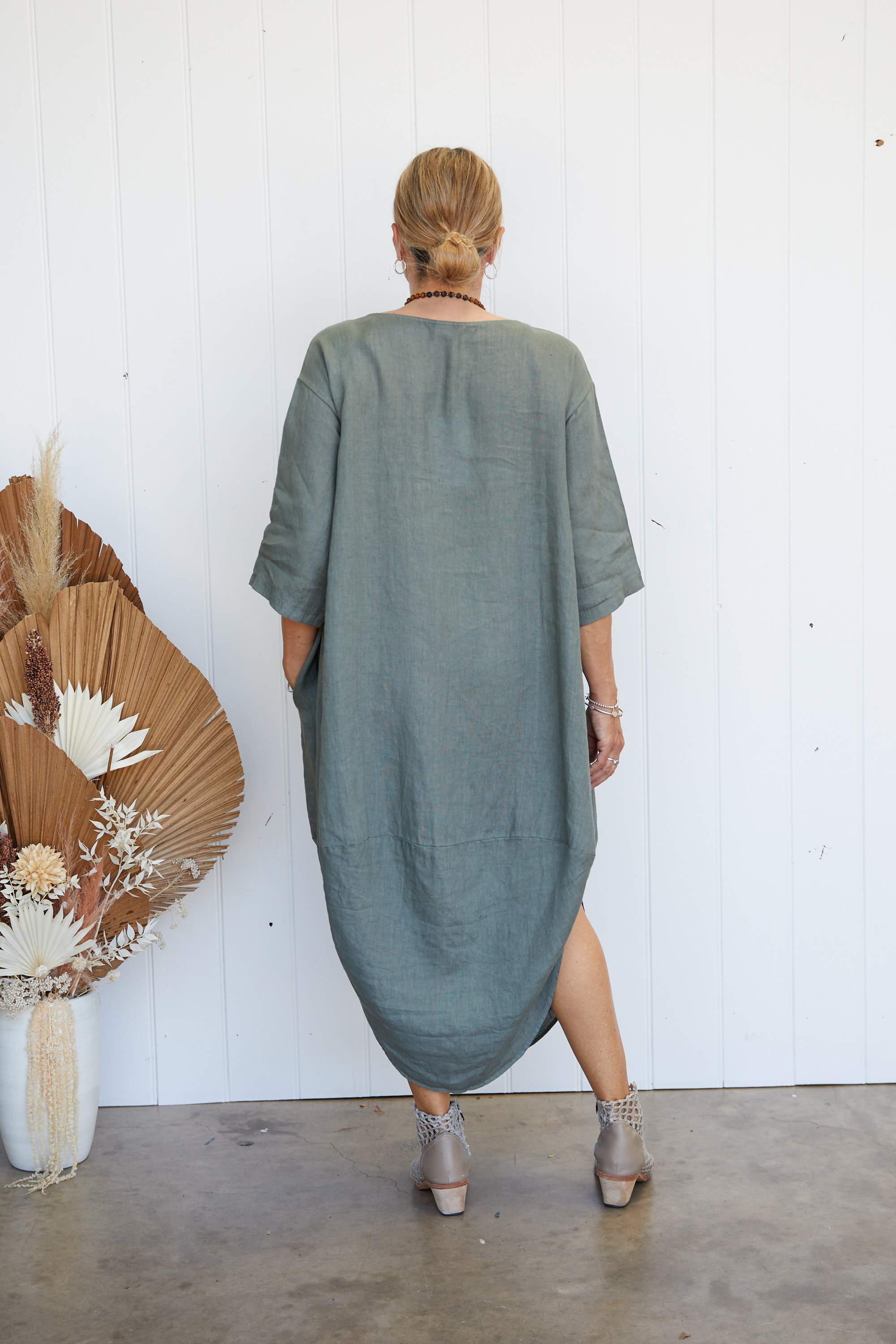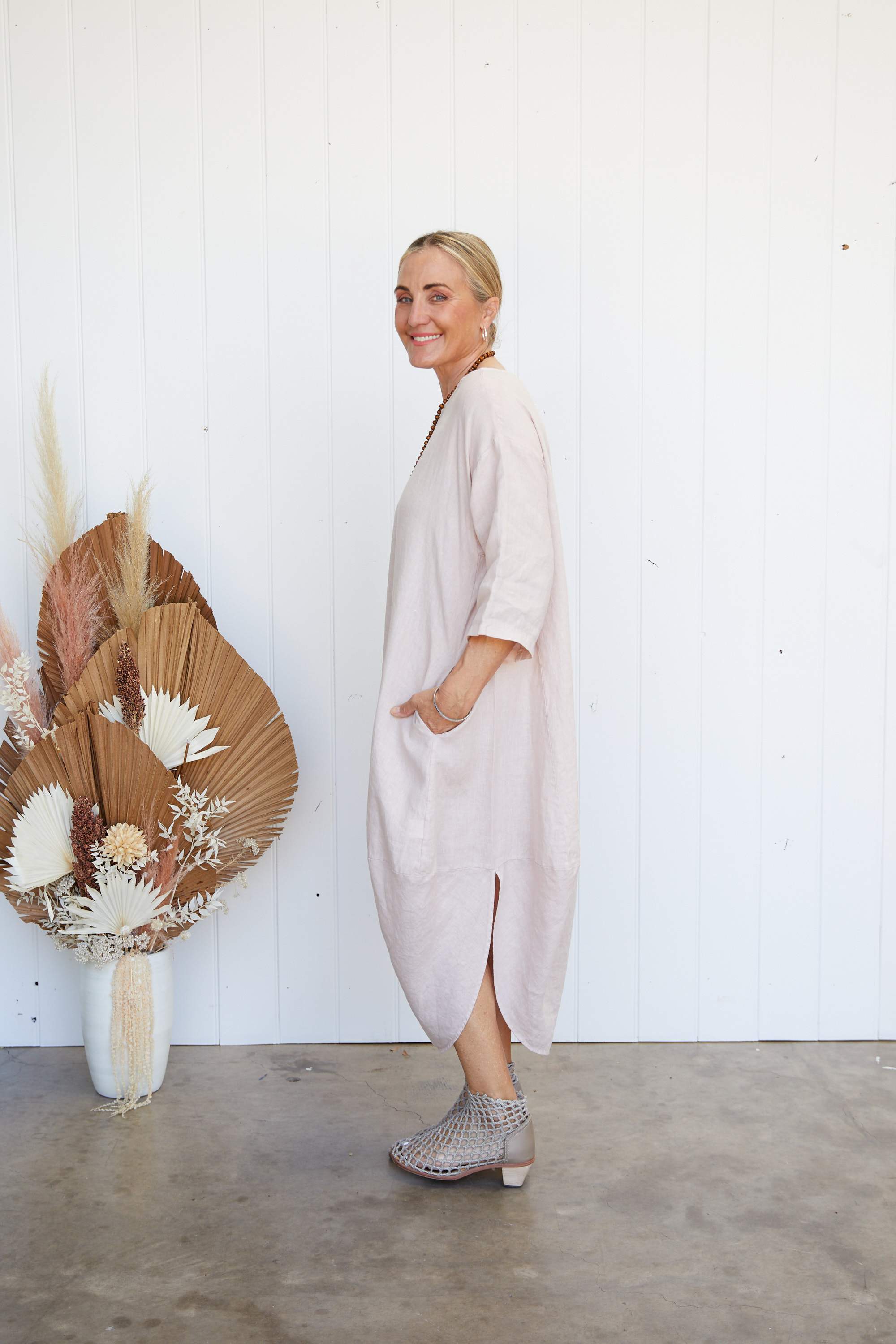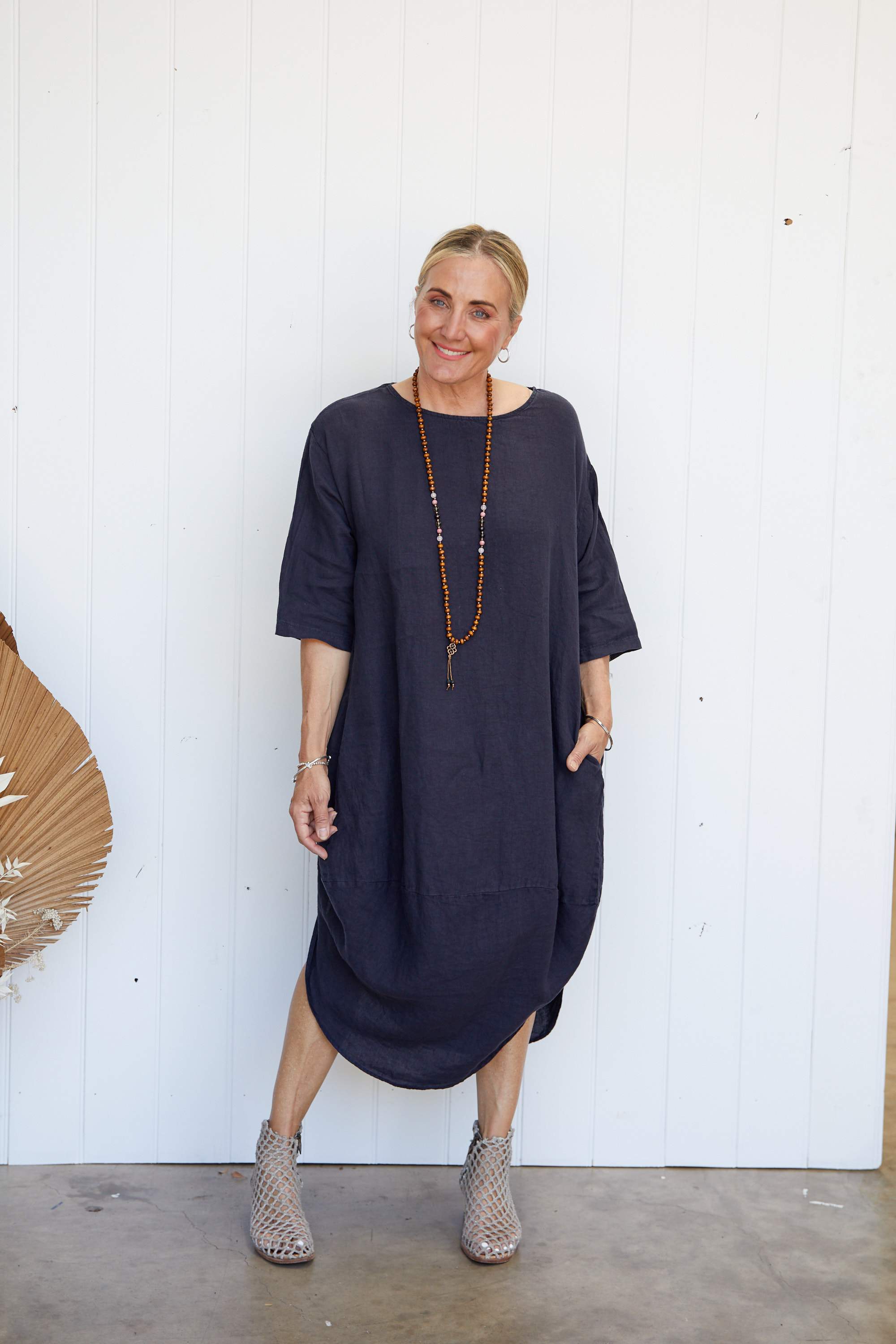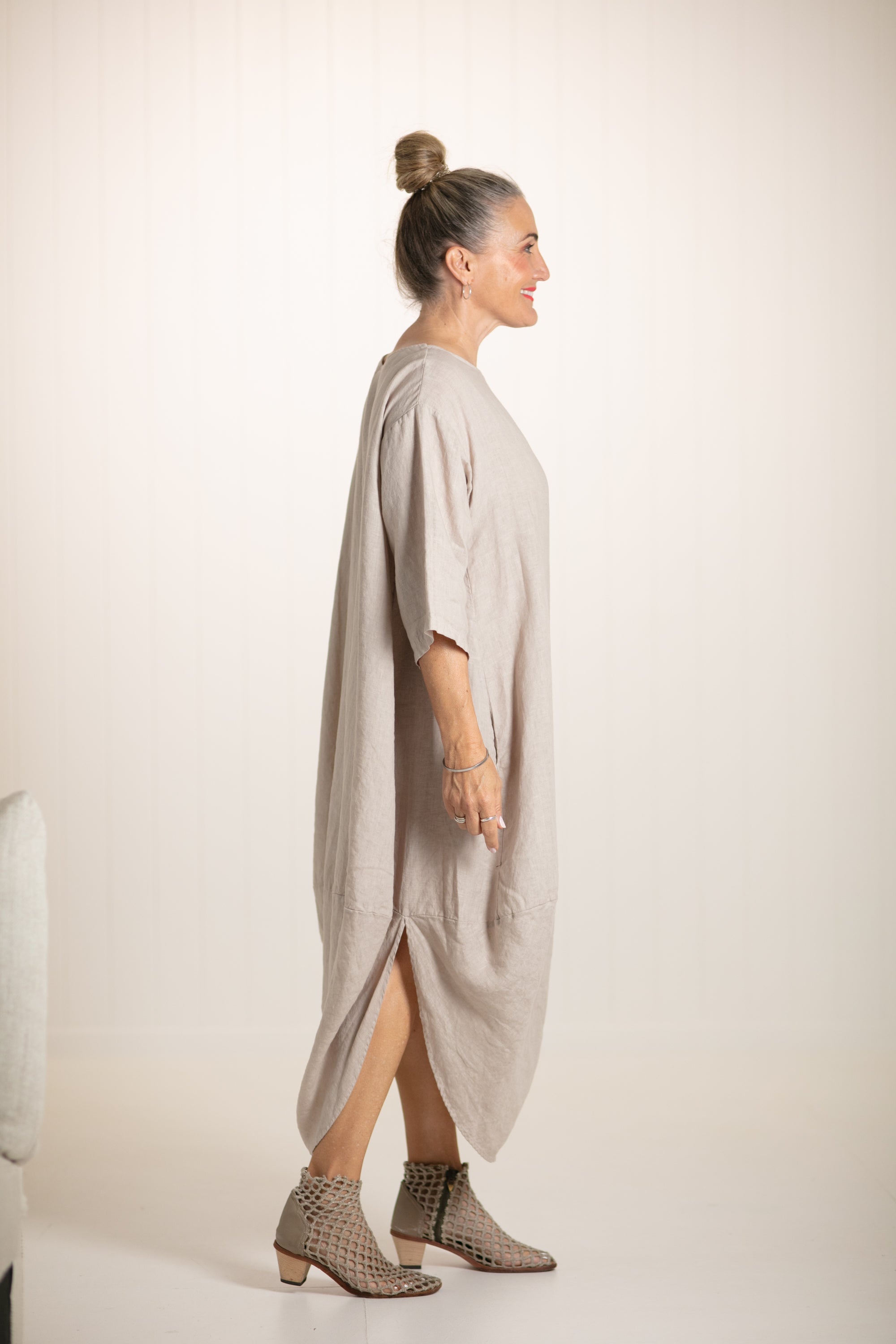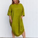 Our best-selling Scallop linen dress is designed to skim the body beautifully & drape elegantly. Featuring a scallop edge to create a flattering line it takes on an almost sculptural look. An easy-to-throw on style that instantly looks pulled together - we love it paired with sneakers, boots, or heels - it's that versatile. Made from the softest Italian linen, it's breathable and comfortable. Available in a range of colours.