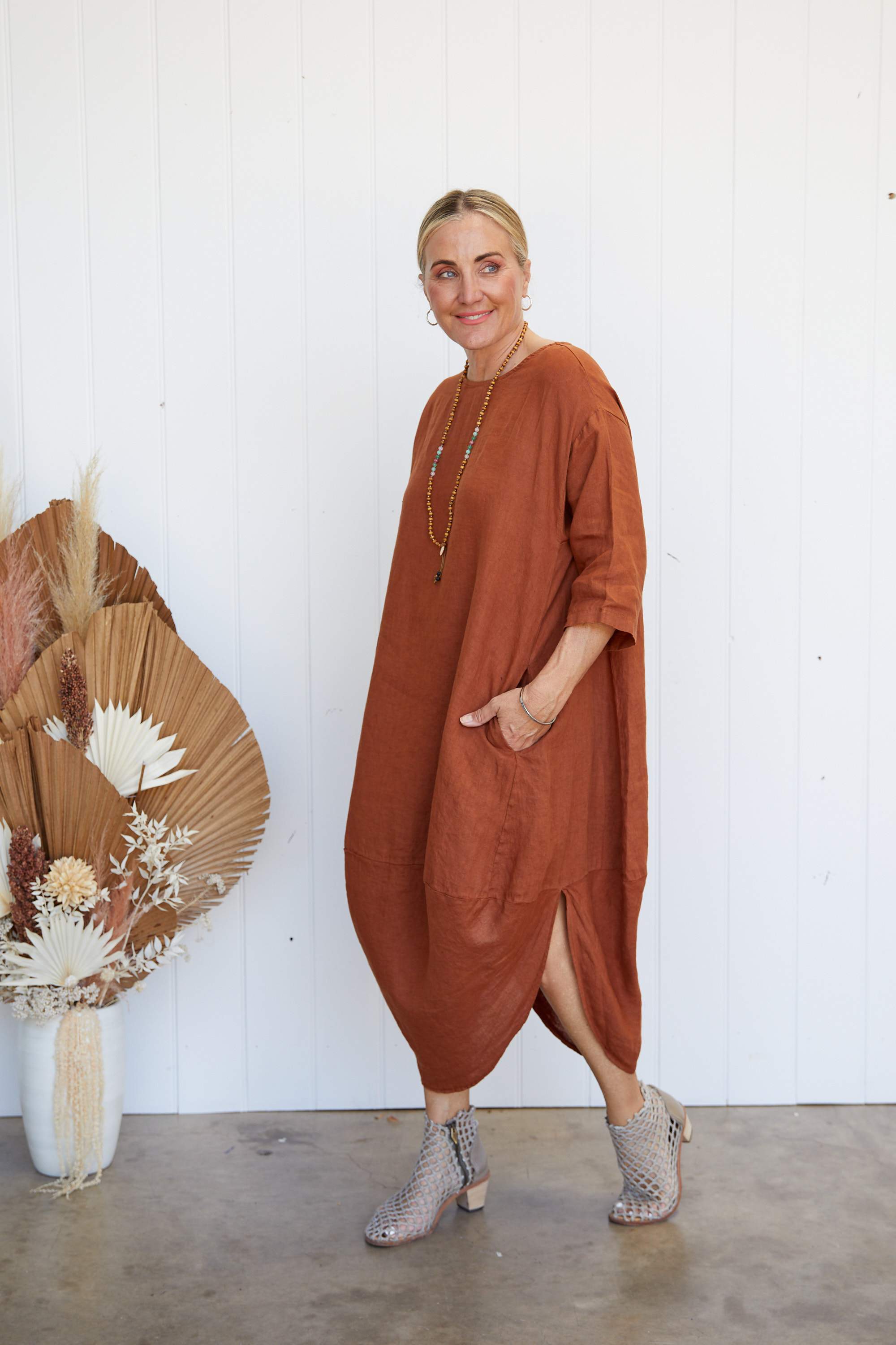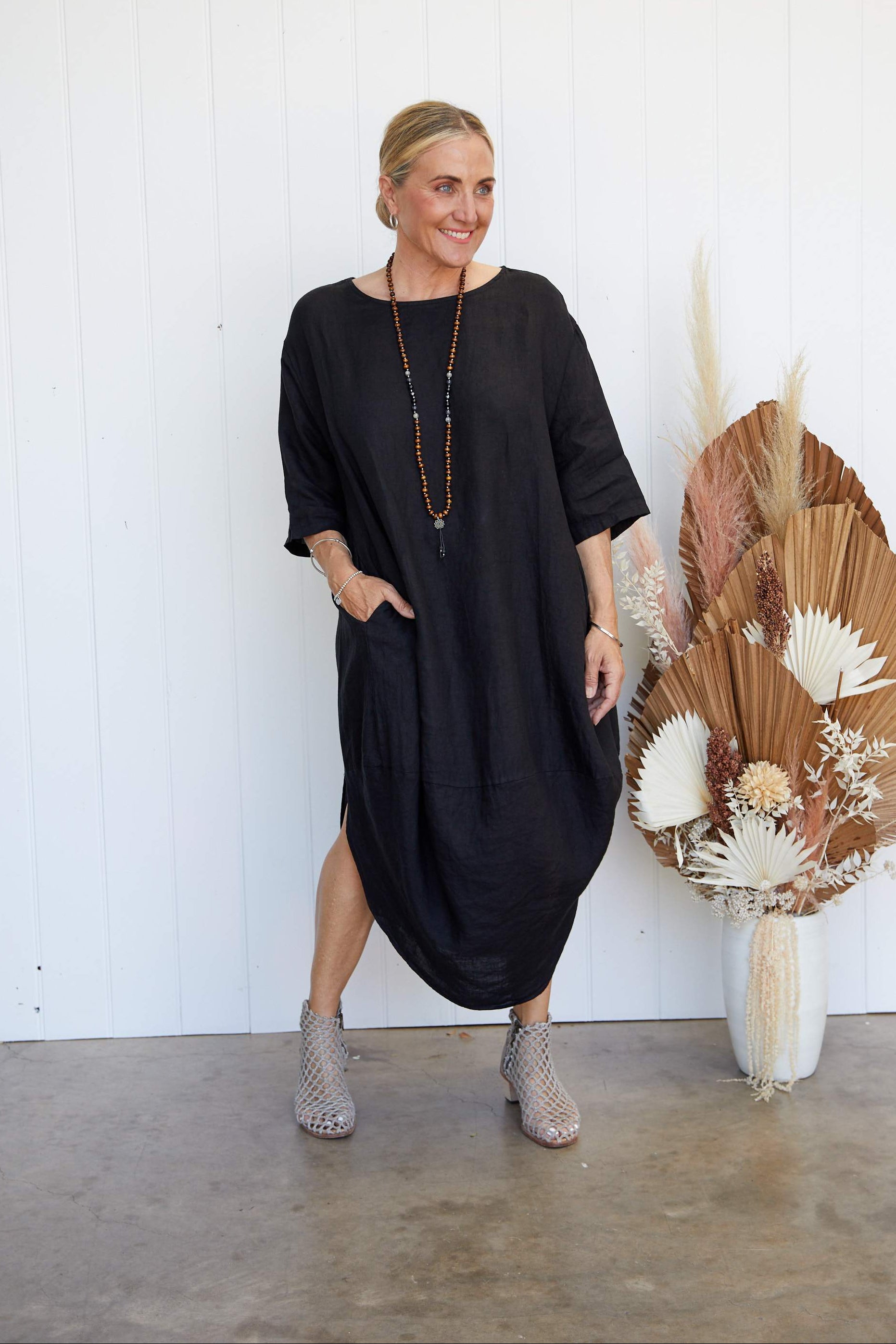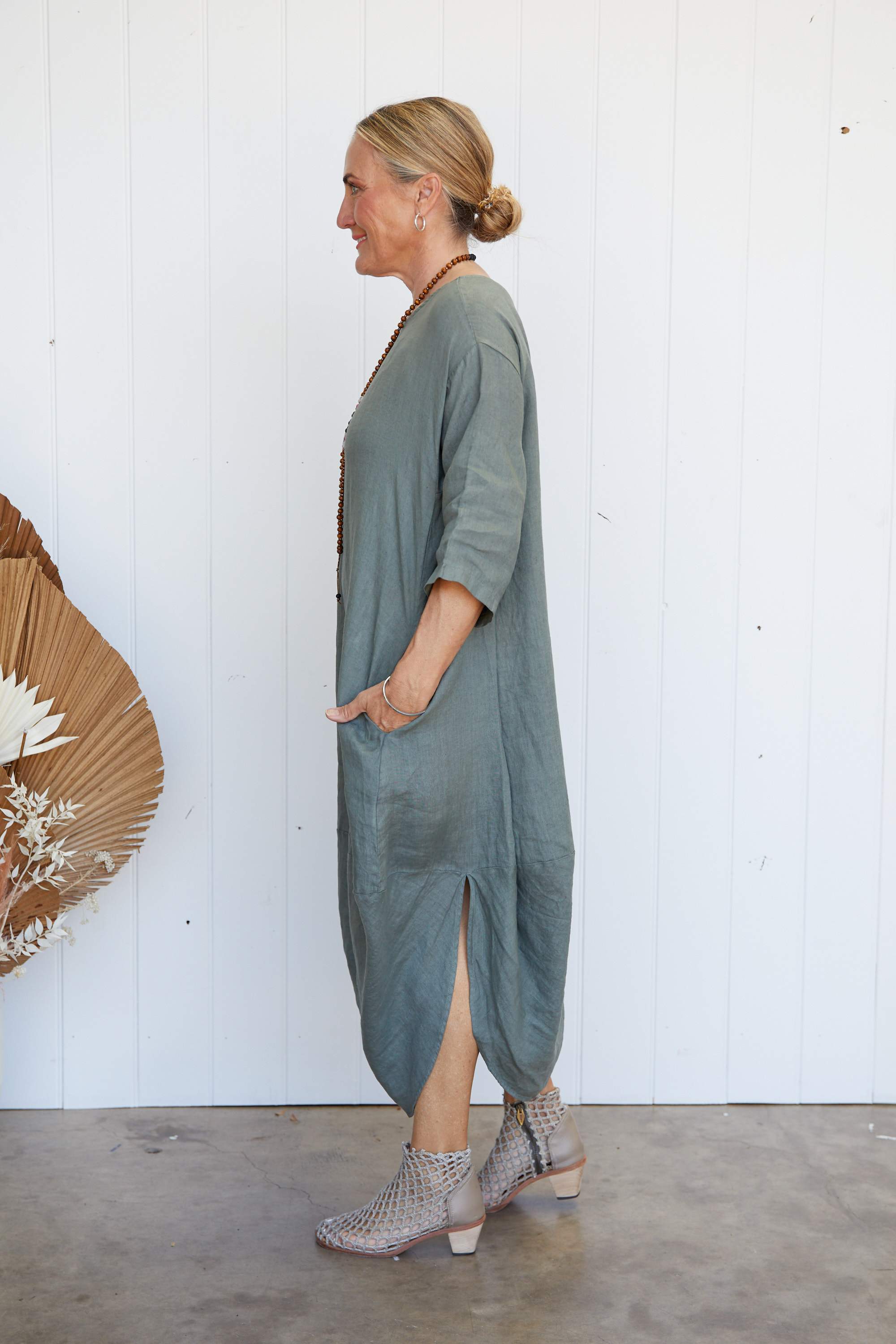 Our best-selling Scallop linen dress is designed to skim the body beautifully & drape elegantly. Featuring a scallop edge to create a flattering line it takes on an almost sculptural look. An easy-to-throw on style that instantly looks pulled together - we love it paired with sneakers, boots, or heels - it's that versatile. Made from the softest Italian linen, it's breathable and comfortable. Available in a range of colours.