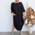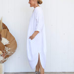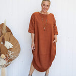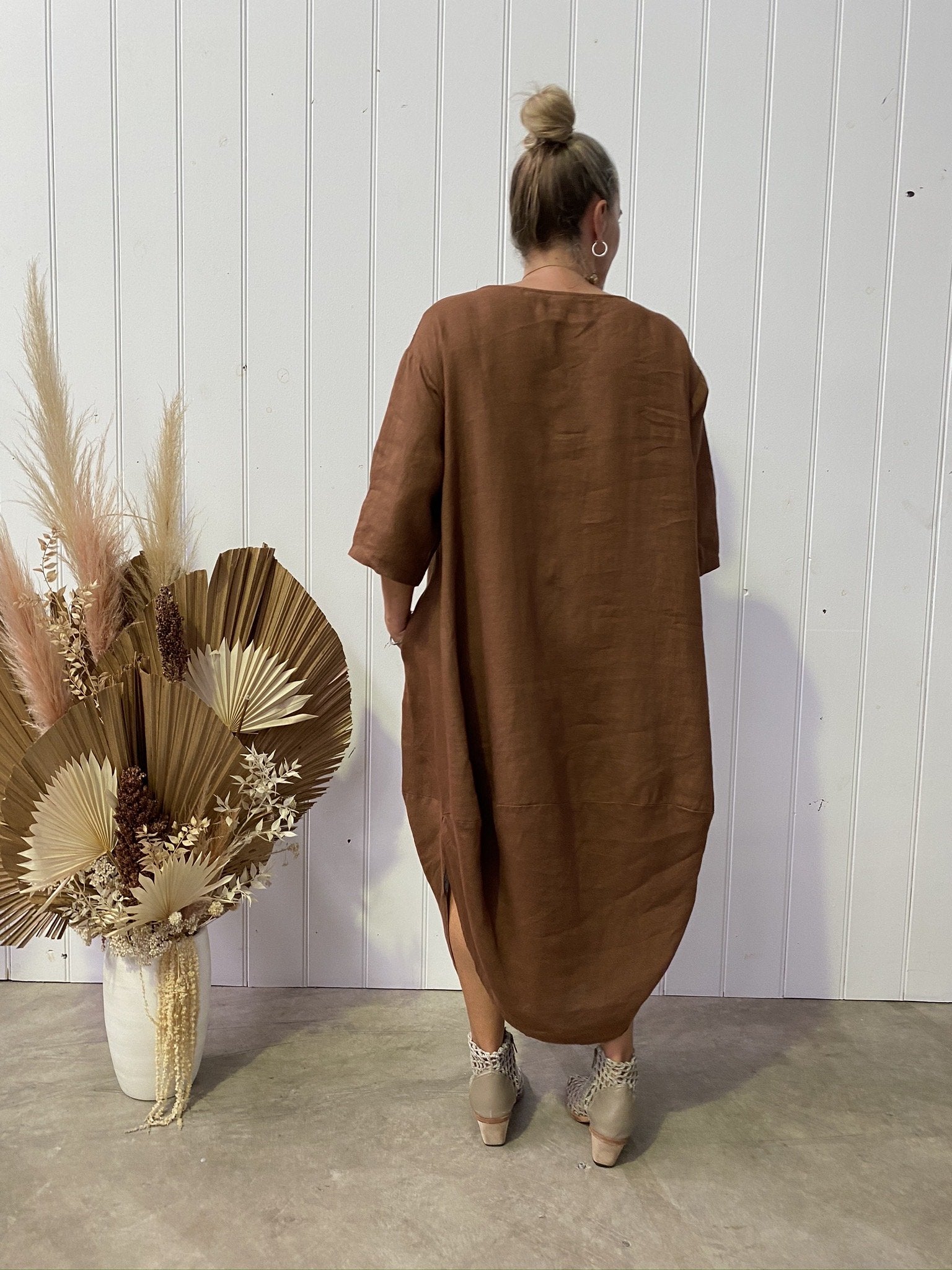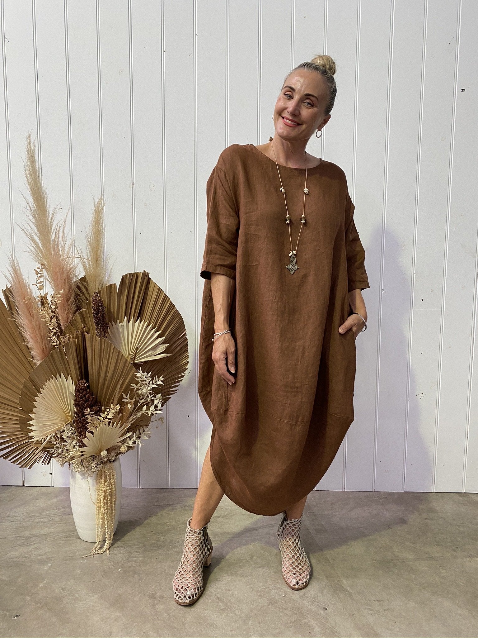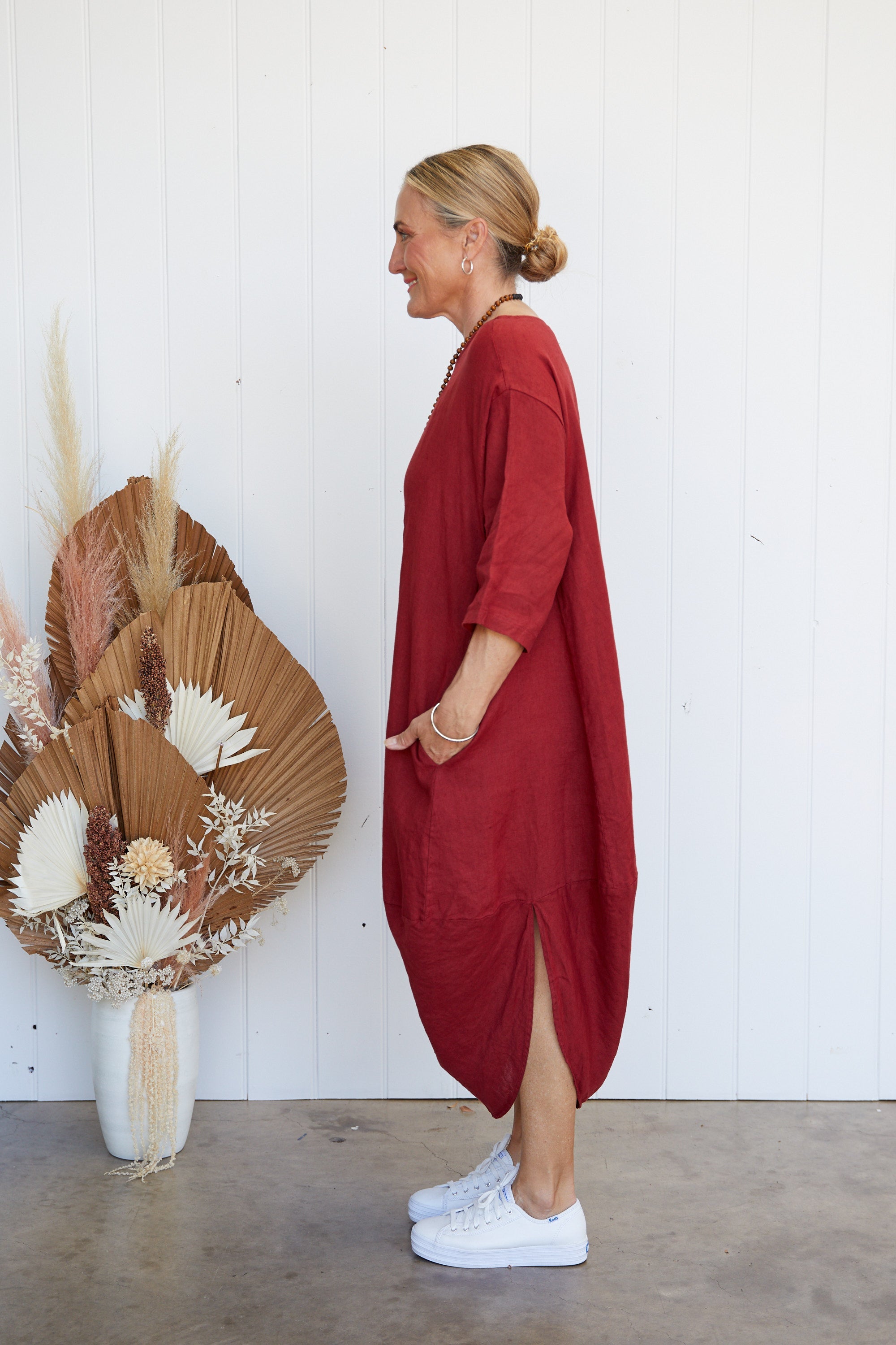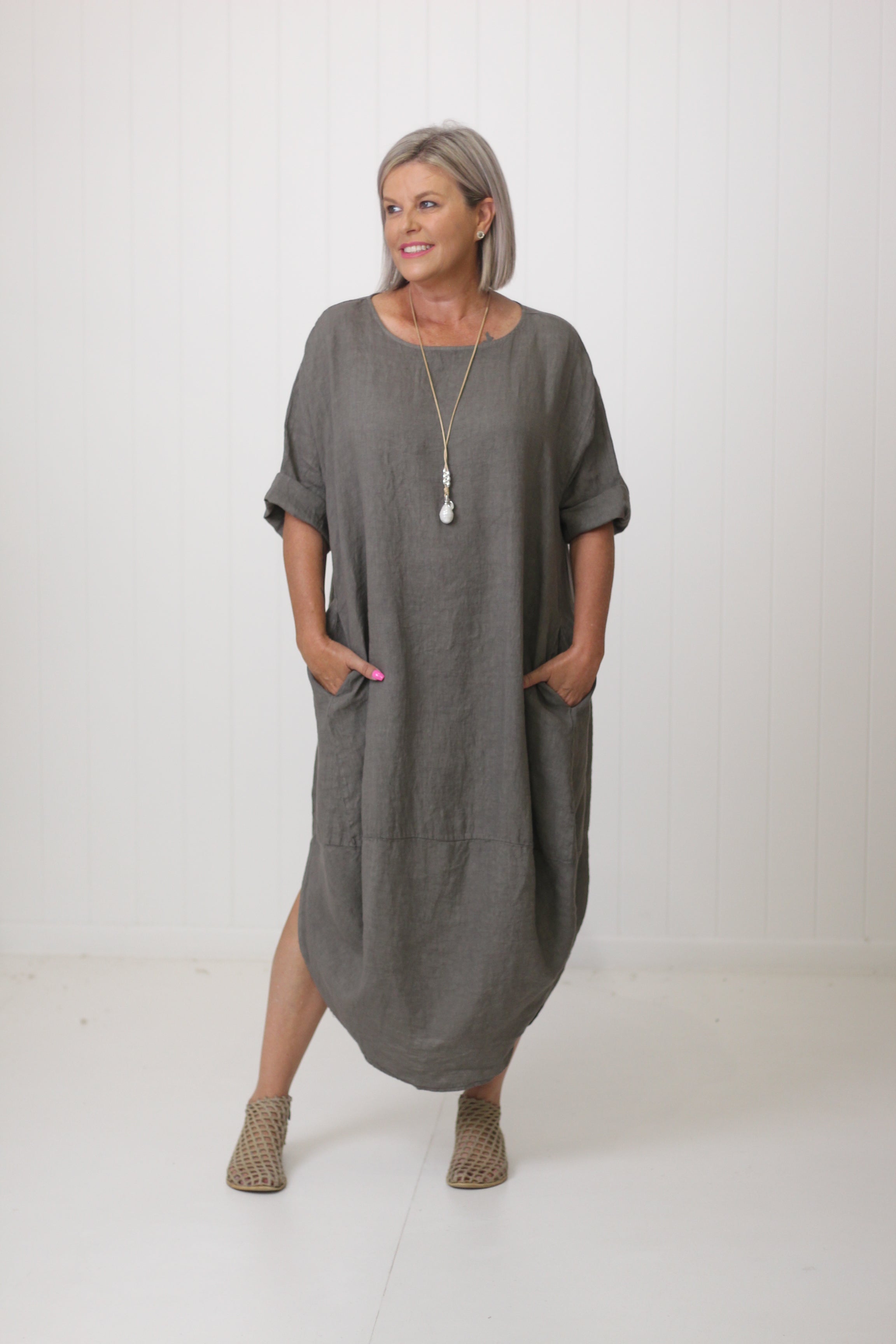 Our best-selling Scallop linen dress is designed to skim the body beautifully & drape elegantly. Featuring a scallop edge to create a flattering line it takes on an almost sculptural look. An easy-to-throw on style that instantly looks pulled together - we love it paired with sneakers, boots, or heels - it's that versatile. Made from the softest Italian linen, it's breathable and comfortable. Available in a range of colours.