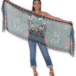 The fabric is luxurious Viscose and Modal blended to create the softest scarf you will ever wear. The material is a 100% natural fibre sourced from different woods so it is breathable, warm and yet will not overheat.