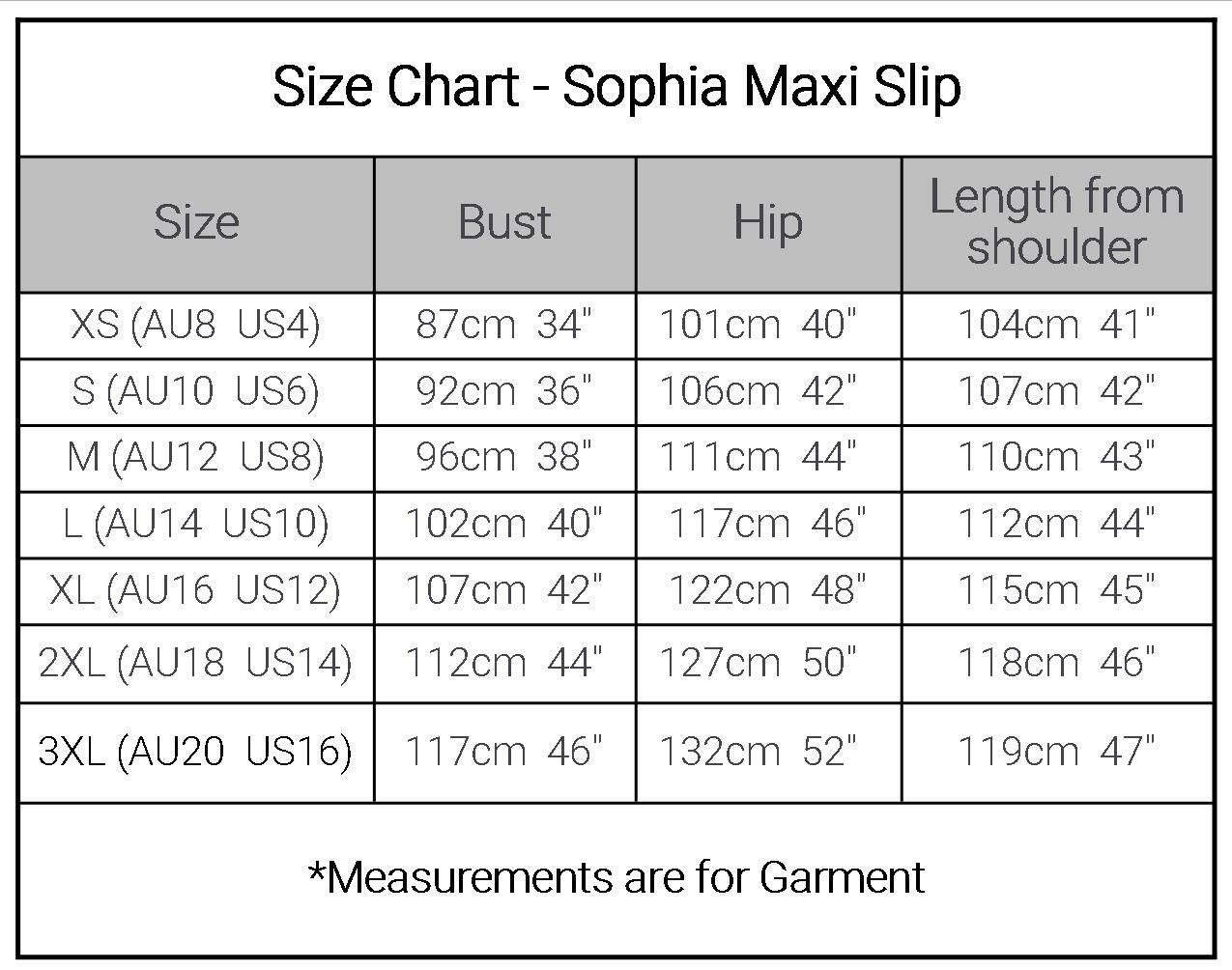 Our Sophia Maxi Slip Dress skims the body with a soft and lustrous drape. With all the natural attributes of cotton blended with Viscose, derived from wood pulp, gives the fabric its lovely satin finish and feel. Viscose like cotton is breathable and absorbent making it cool to wear.