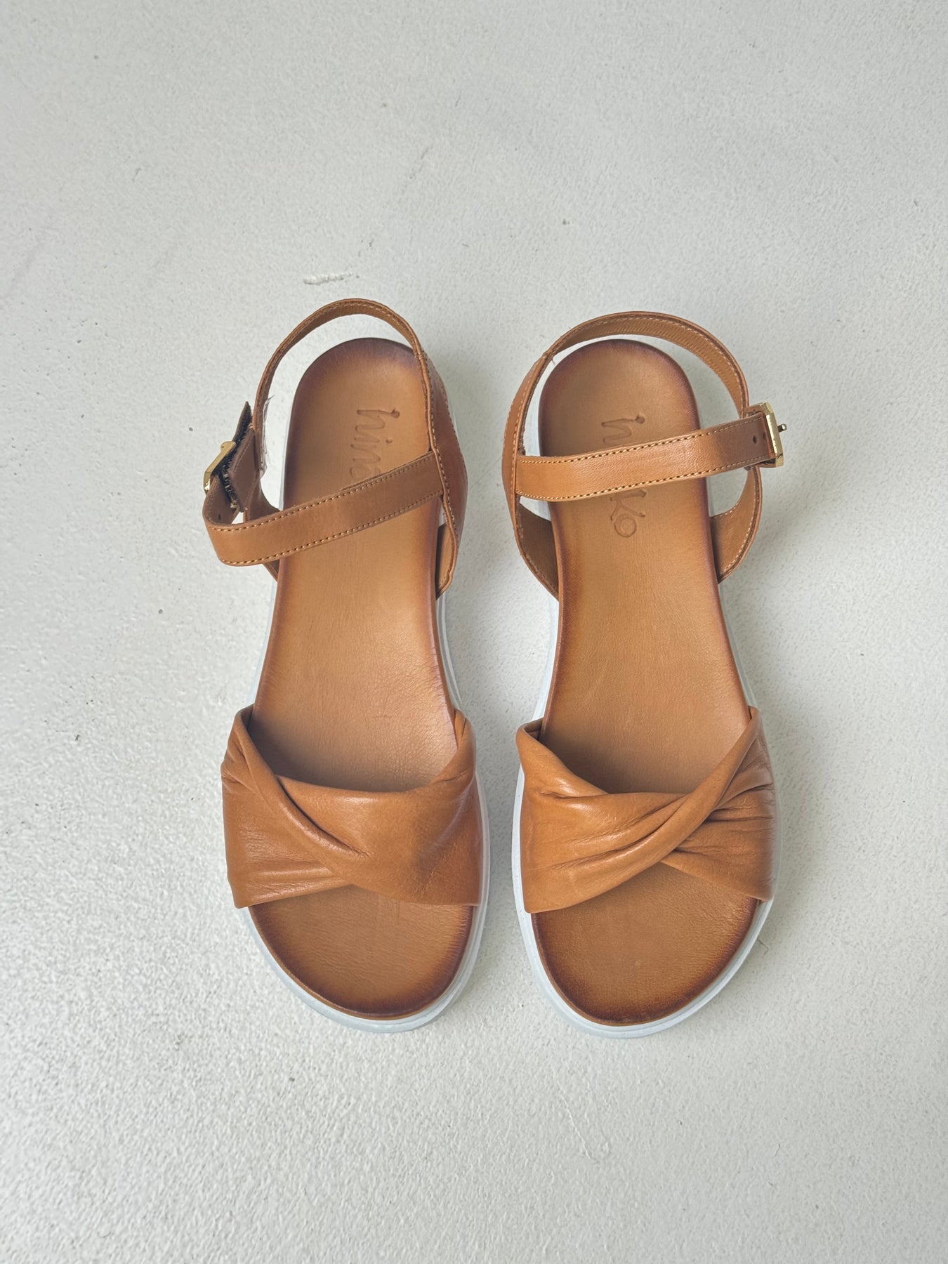 The Arlo low platform sandal is a casual style, crafted from premium leather upper with a comfy saw edge rubber sole. An easy to wear style featuring buckle fastening strap, knotted front strap adds that little extra detail. Pair with your favourite dress.