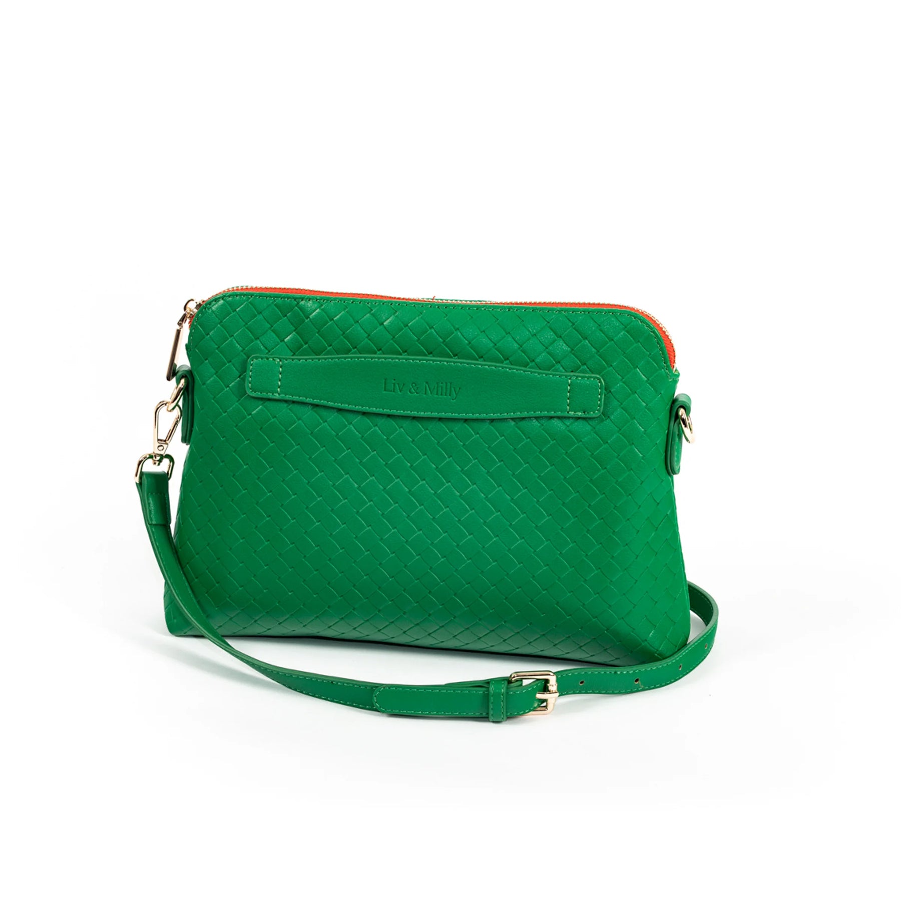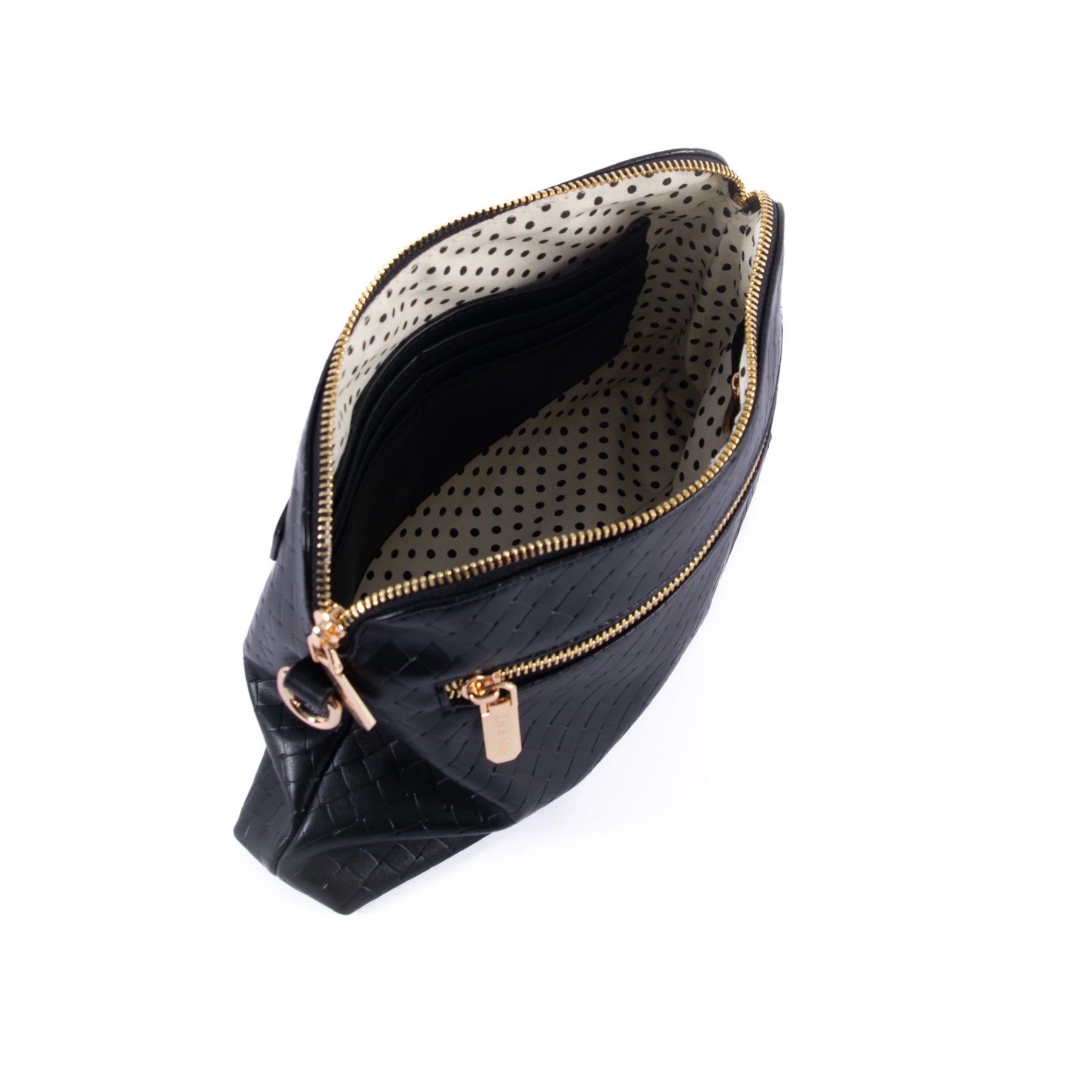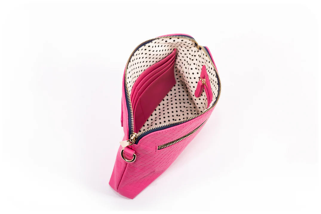 This little bag is a beauty! An easy to use cross body bag with a fun plaited look, Removable shoulder strap, with an optional wristlet and a bonus section to store your cards should you wish to leave your wallet at home.