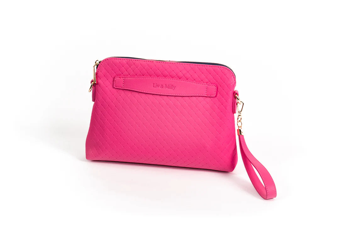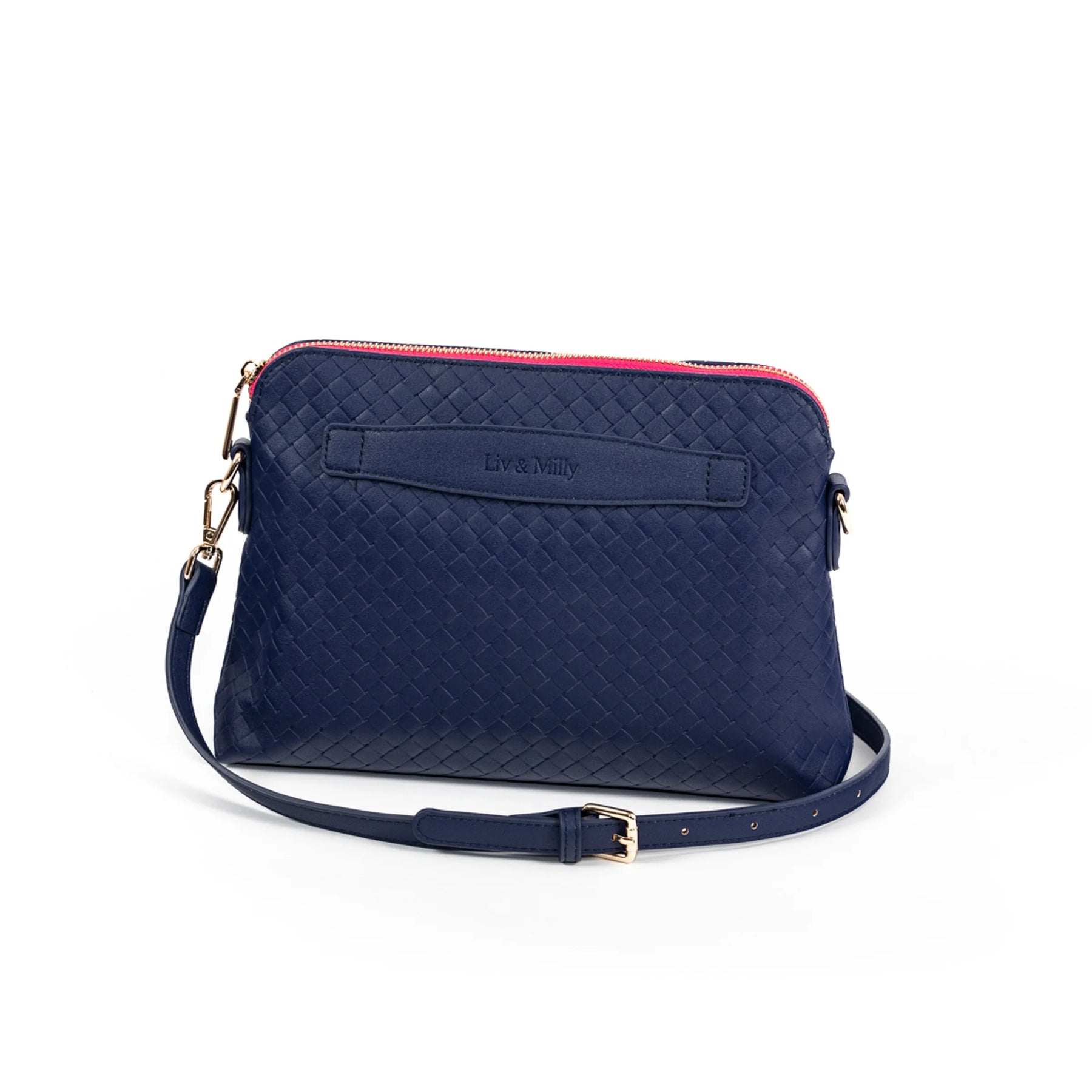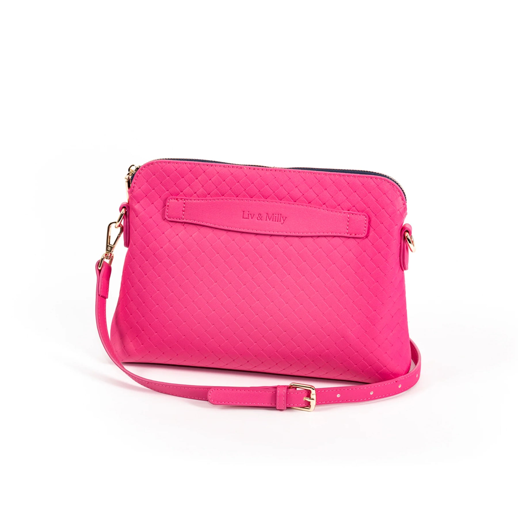 This little bag is a beauty! An easy to use cross body bag with a fun plaited look, Removable shoulder strap, with an optional wristlet and a bonus section to store your cards should you wish to leave your wallet at home.