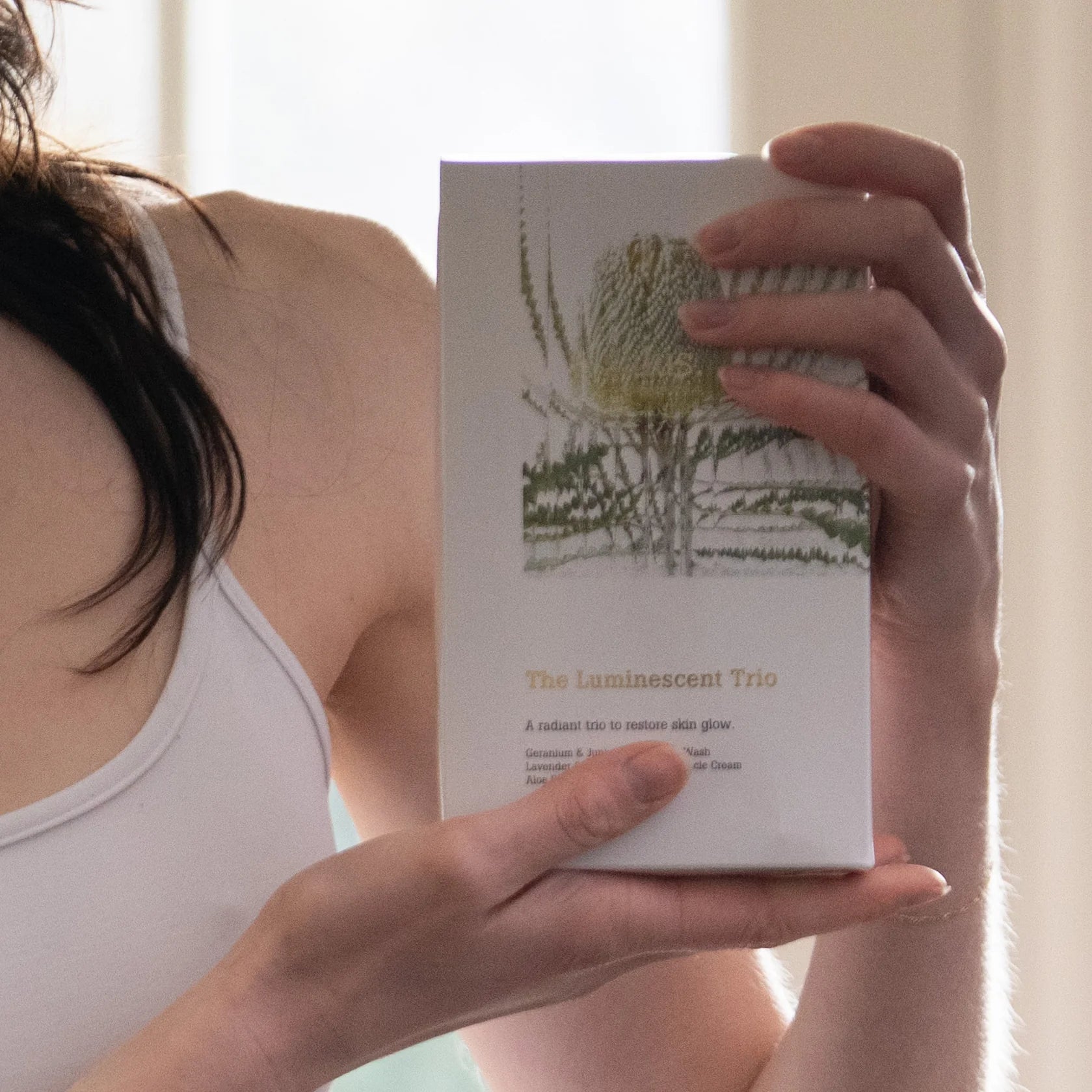 [{"id":51657319481710,"title":"Default Title","option1":"Default Title","option2":null,"option3":null,"sku":"luminset","requires_shipping":true,"taxable":true,"featured_image":null,"available":false,"name":"The Luminescent Trio (Set)","public_title":null,"options":["Default Title"],"price":4000,"weight":0,"compare_at_price":null,"inventory_quantity":0,"inventory_management":"shopify","inventory_policy":"deny","barcode":"29765636","requires_selling_plan":false,"selling_plan_allocations":[],"quantity_rule":{"min":1,"max":null,"increment":1}}]
