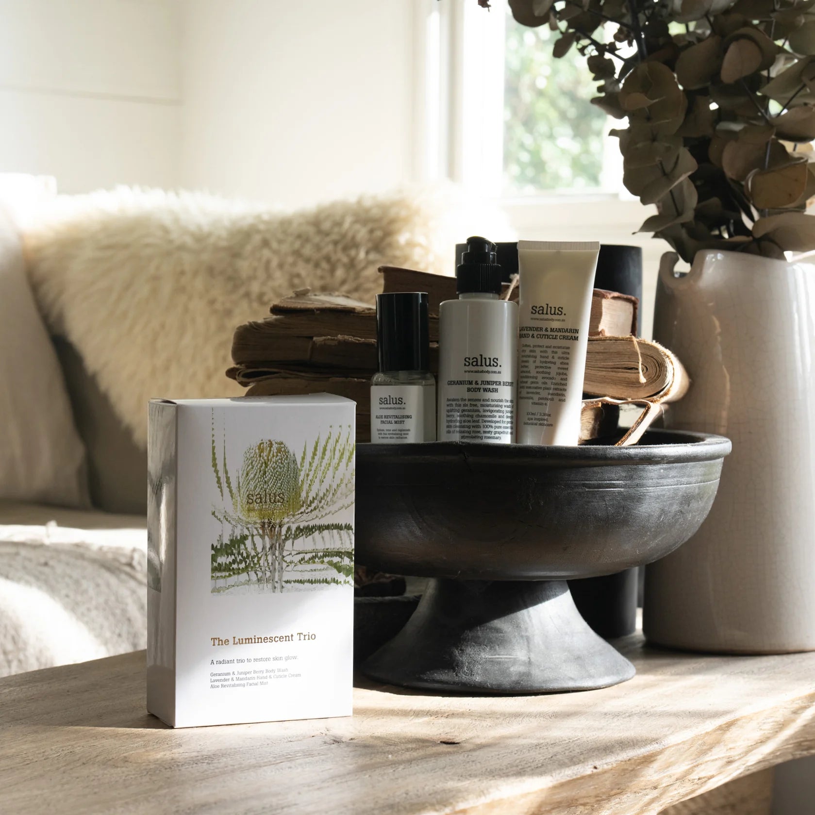 Geranium & Juniper Berry Body Wash 195ml / Lavender & Mandarin Hand & Cuticle Cream 100ml / Aloe Revitalising Facial Mist
