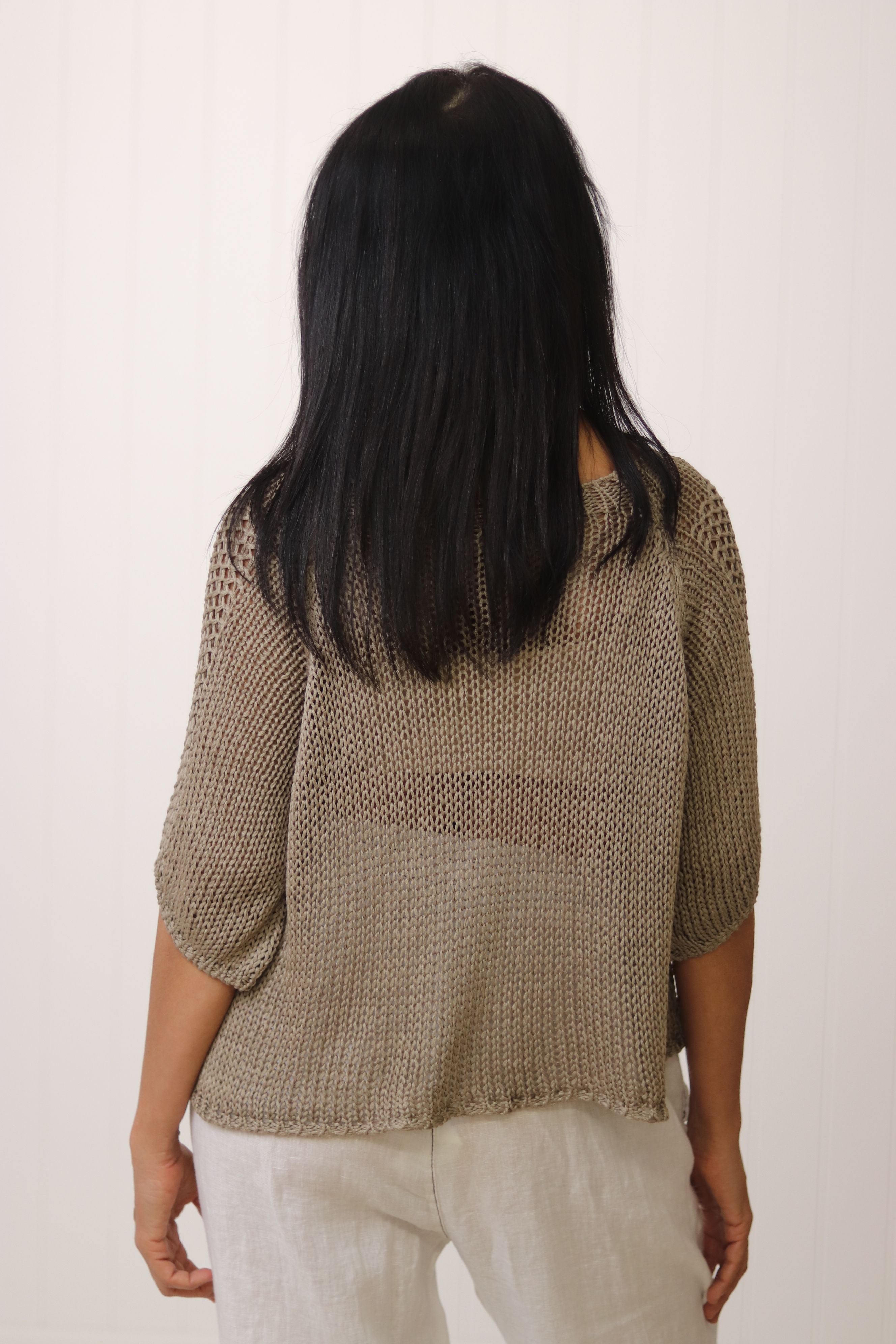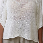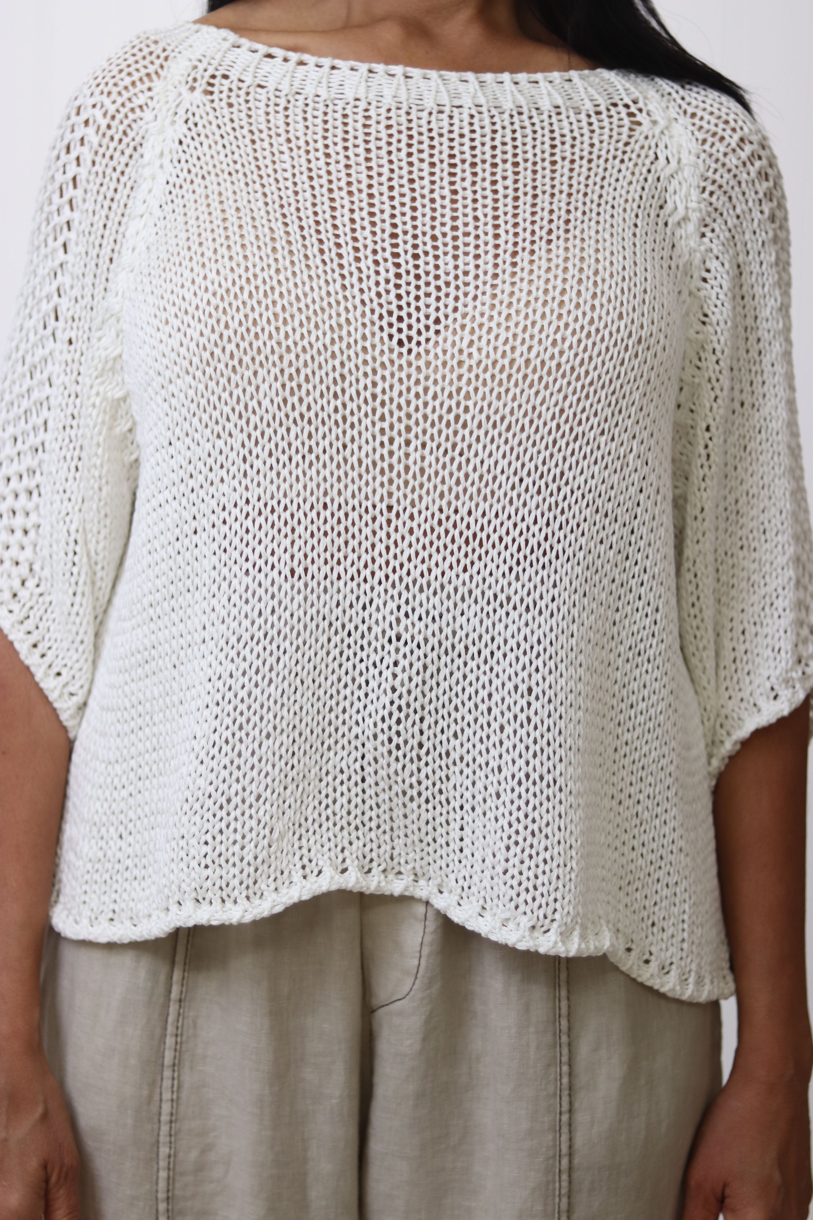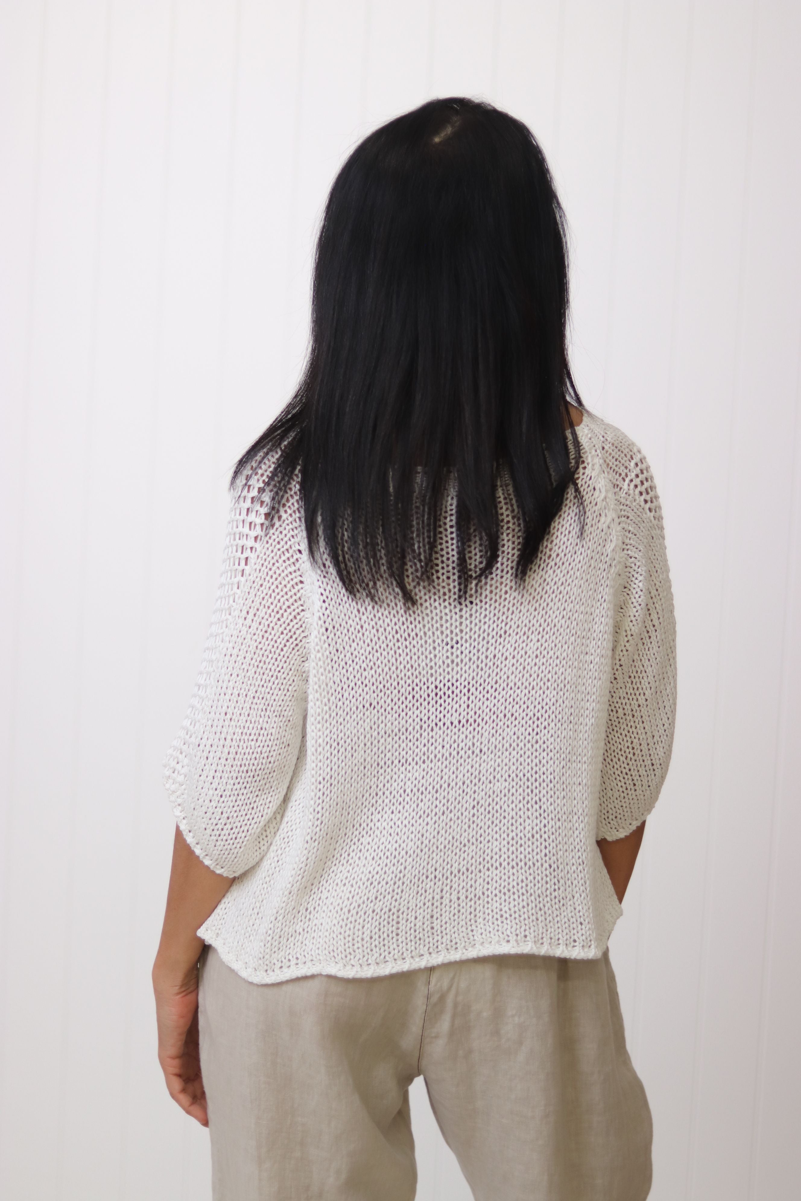 The Violet Cotton Knit, crafted from beautiful cotton, offers lightweight comfort with its breathable texture. Featuring a rounded neck and half-length sleeves, it provides a versatile and elegant look. Due to its lightweight nature, layering with a cami or similar garment underneath is recommended for optimal comfort and coverage. Perfect for transitional weather, this piece combines style and practicality with expert tailoring.